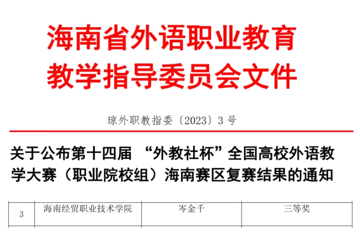 公司青年教师指导员工荣获2023年海南省职业院校技能大赛英语口语赛项佳绩