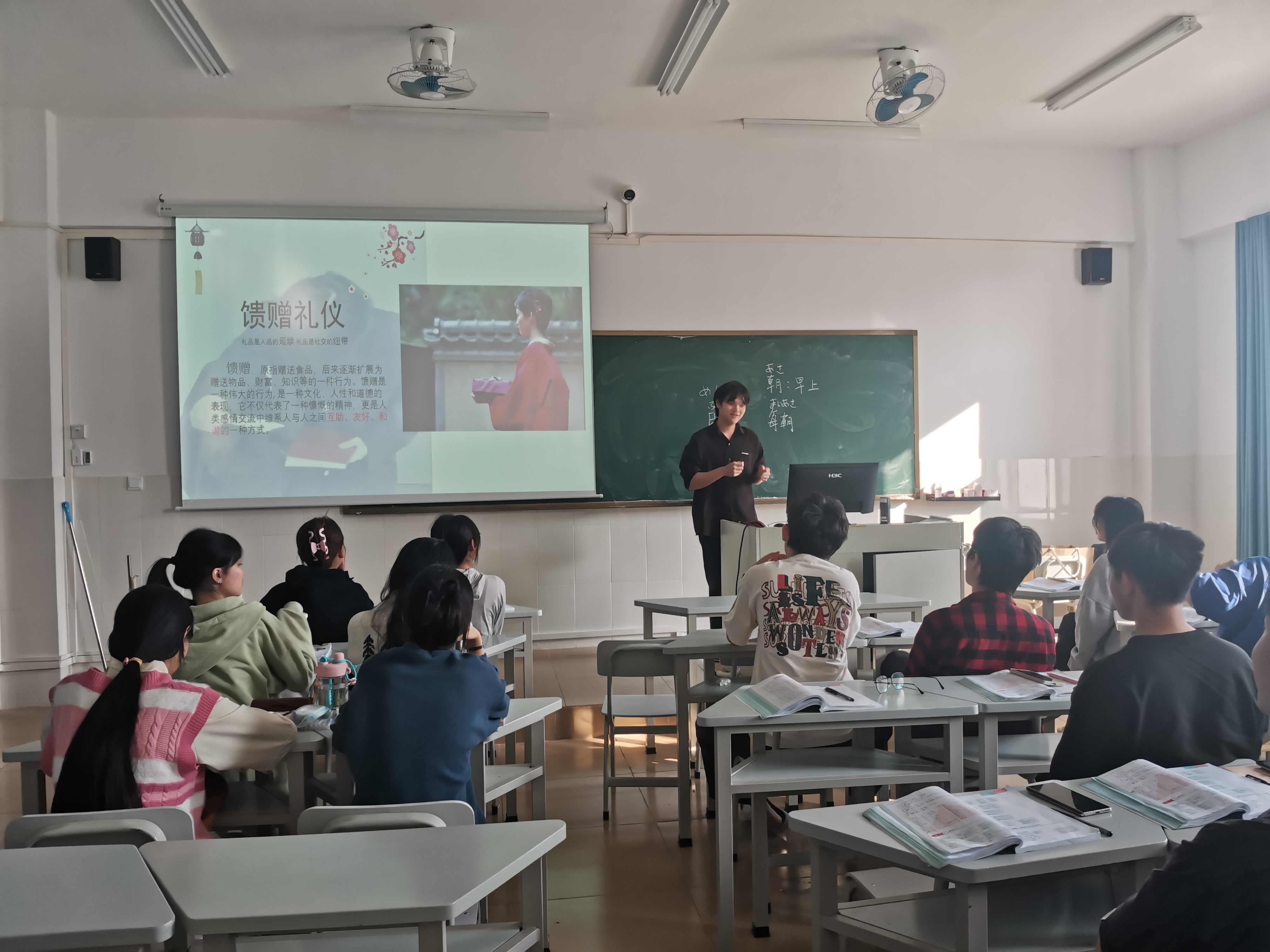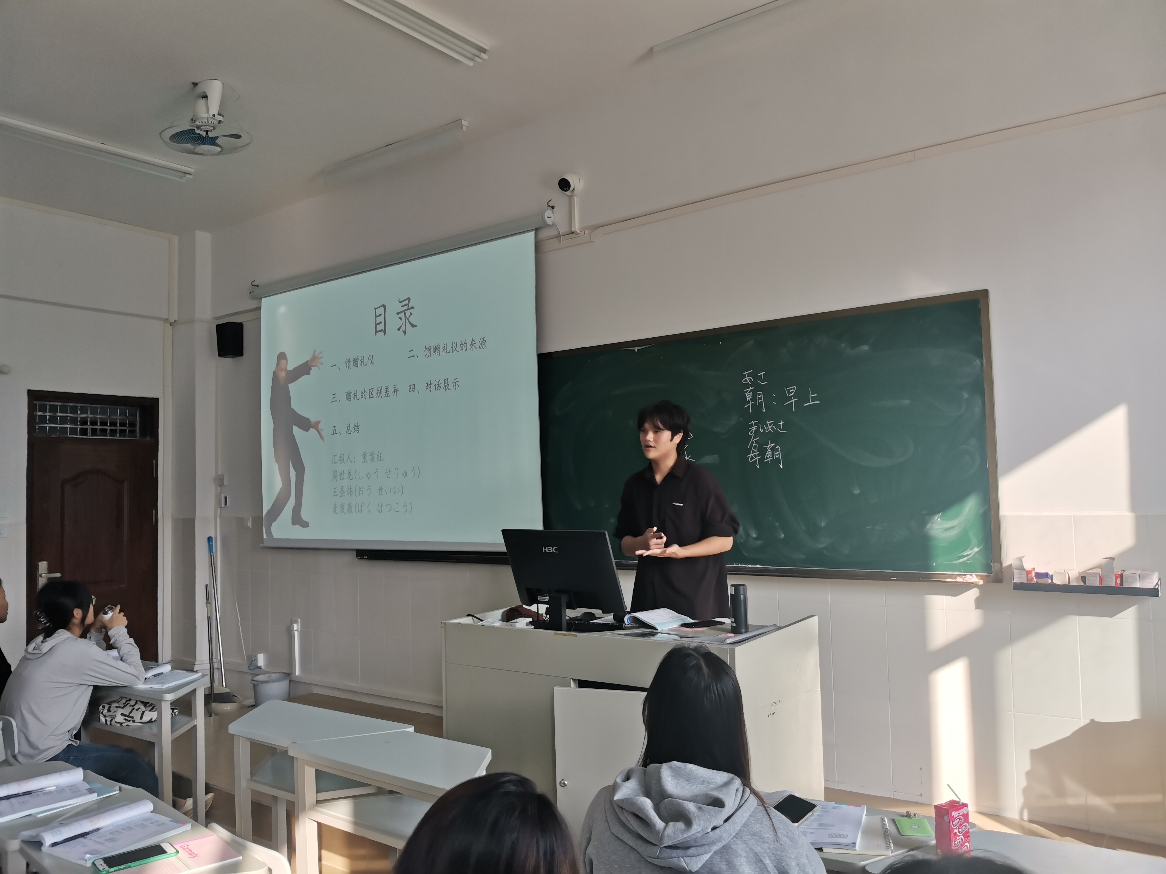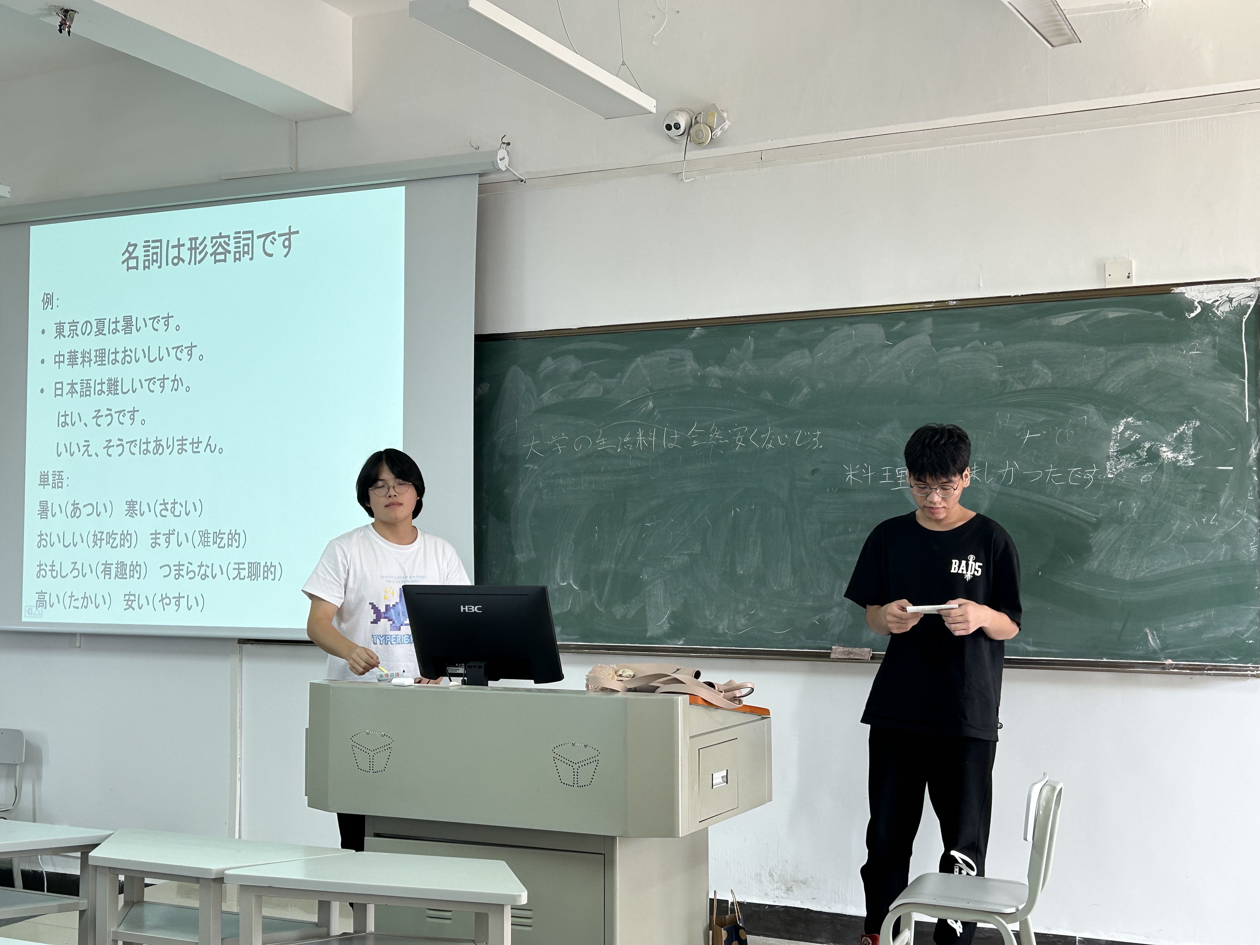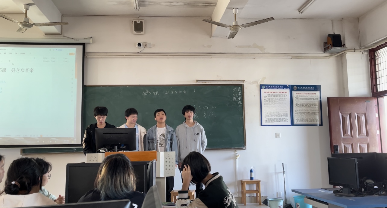 (王俊杰、王衍钦在日语语法课上发表。)