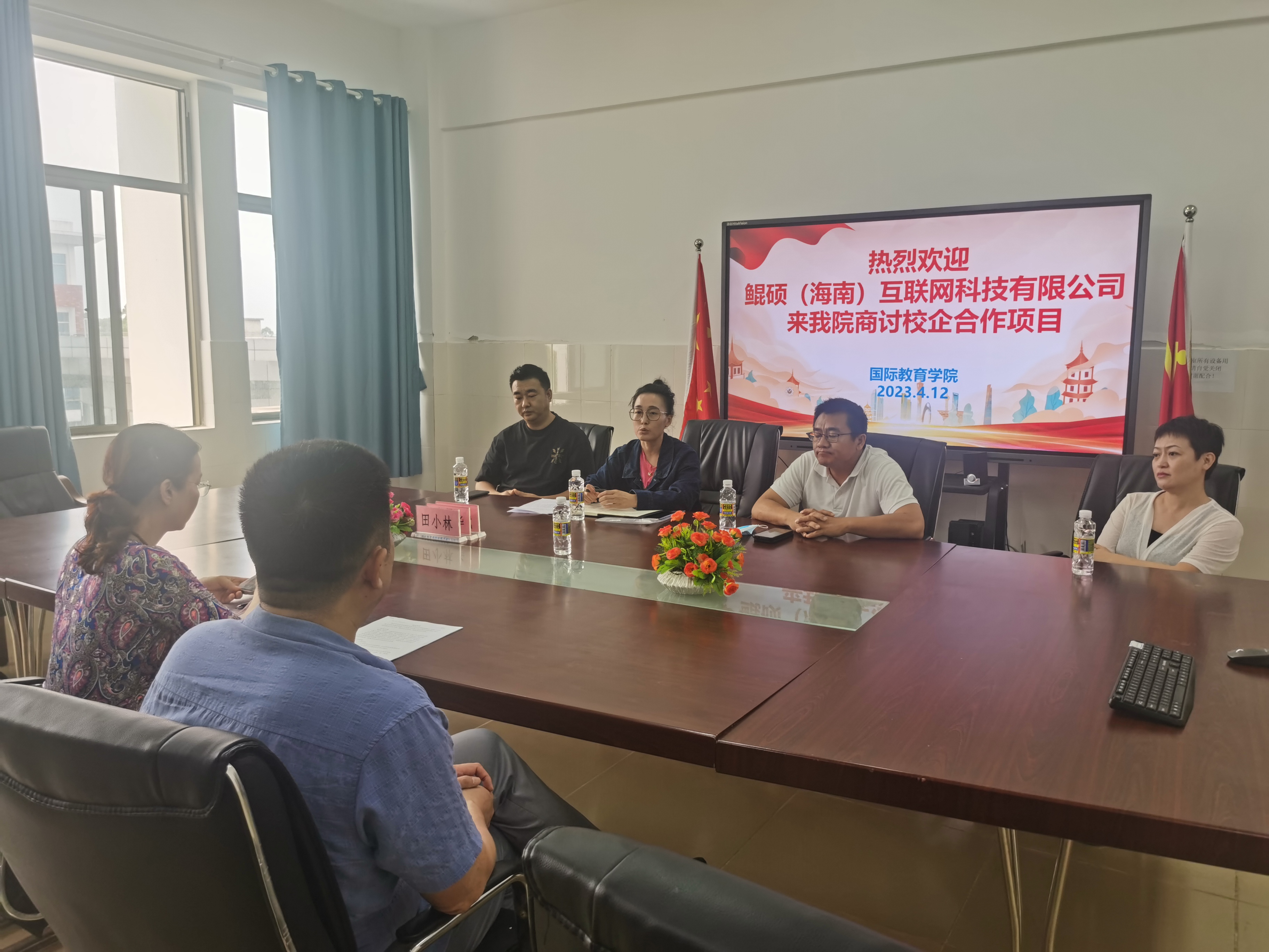 2023年4月12日,鲲硕(海南)互联网科技有限公司岳雪山总监一行4人前来公司进行座谈,就进一步深化校企合作,加强供需对接,整合优质就业资源,助力员工的高质量就业和人才培养高质量发展进行了商讨。座谈会上,国际教育公司韩大伟经理、刘莉副经理介绍了公司总体发展情况、国际教育公司人才培养情况以及毕业生就业工作等,公司将积极促进人才培养与企业用人需求精准对接,实现毕业生更加充分、更高质量就业创业,更好地服务地方经济社会高质量发展。 企业负责人分别围绕企业发展情况、人才需求、校企协作等进行了交流发言,对公司人才培养质量和毕业生职业能力给予高度评价。校企双方在教学实践、实习实训、就业对接等方面达成进一步合作共识。