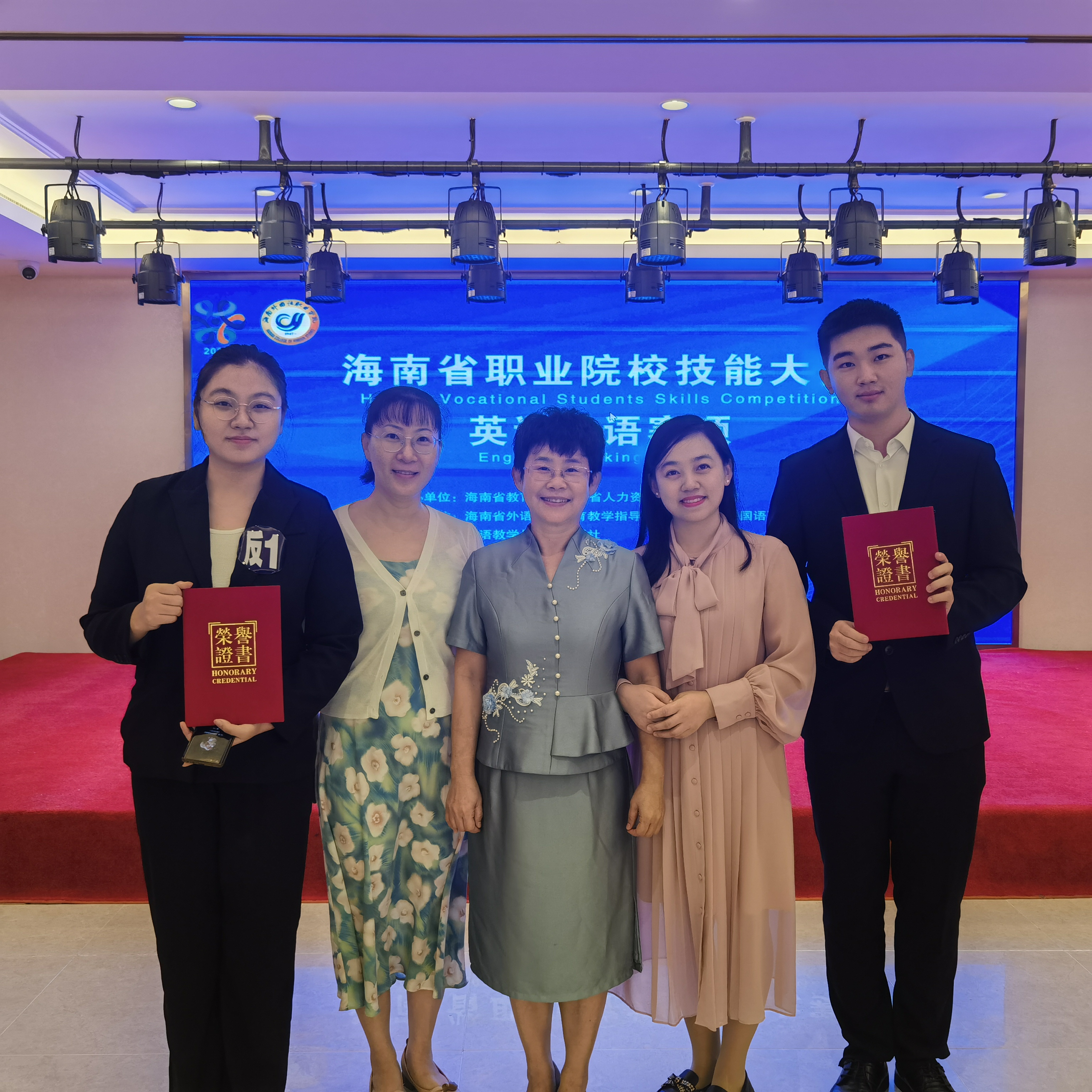 海南省职业院校技能大赛(高职组)“英语口语”赛项比赛分为四个赛段,分别为“中国故事”、“情景交流”、“职场描述”和“职场辩论”四个环节,选手分为英语专业组和非英语专业组。本赛项在内容上有所改进,更加贴合职业教育特点,专业分组得以让更多选手参与国赛,提高外语交际能力。在本次省赛备赛过程中,国际教育公司选派了李红梅、林贞担任指导老师,两位指导老师克服种种困难,带领员工积极备赛。两位参赛选手在比赛过程中发挥稳定,表现优异,在海南省职业院校中突破重围,取得了非专业组第一名,专业组第三名的好成绩,充分展现了海经贸学子的良好精神风貌,以实际行动践行了“脊梁精神”。
