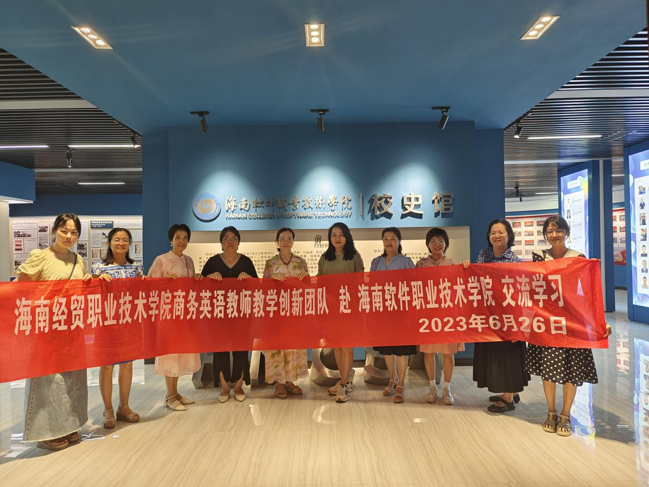 为更好地推进创新团队建设,2023年6月26日,国际教育公司黎瑛副经理、刘莉副经理率领商务英语教师教学创新团队成员一行10人赴海南软件职业技术公司开展校际交流活动。在此次交流活动中,国教院创新团队成员参观了海南软件职业技术公司的校史馆,了解海南软件职业技术公司的百年建校历史和成就;与海南软件职业技术公司国际教育与旅游公司国际旅游专业群教师教学创新团队进行了深入的交流座谈,学习了兄弟院校创新团队建设的宝贵先进经验与成功做法。此次校际交流活动极大地推进了国教院创新团队建设的进一步优化改进,在促进团队总结、凝练团队建设成果及转化,高质量完成团队建设任务方面发挥了积极作用。