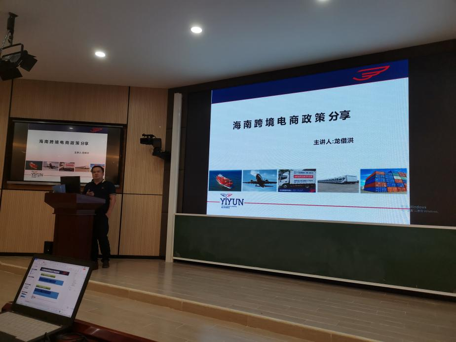 龙借洪副总经理分享了海南跨境电商政策。他结合了自己在跨境电商方面的业务实战经验给同学们上了一堂生动活泼的跨境电商课。