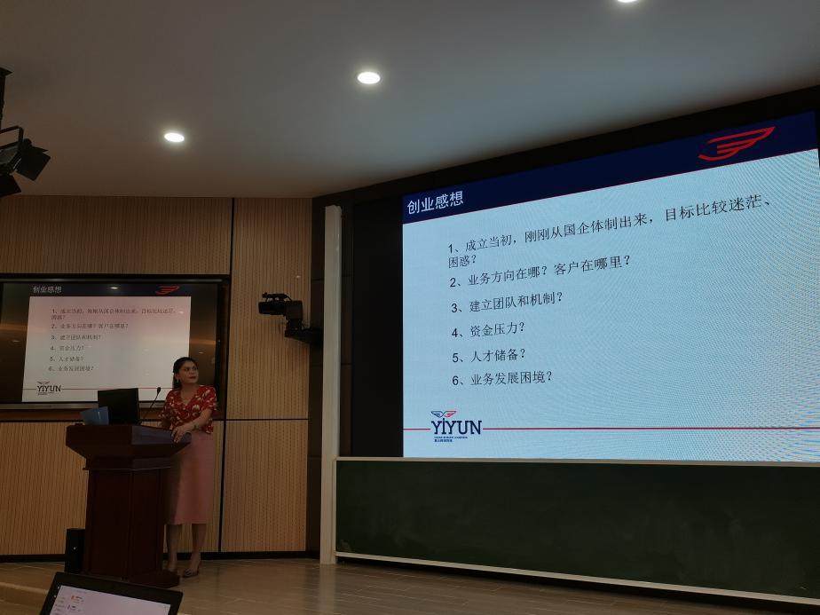 陈一波总经理就跨境物流行业的发展、公司的服务优势、创业感想等方面与同学们进行了分享,并对即将毕业的同学们寄予殷切期盼。她寄语同学们要正确认识自我、注重自身能力的培养与素质的全面提高、特别是要诚信做人做事。