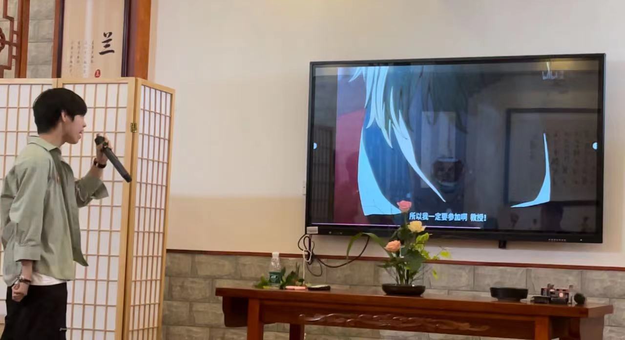 特邀嘉宾----海口旅游公司的三年级员工王荣凡,带来了日本配音作品《fate/strange fake》,感情充沛,同学们纷纷鼓掌赞叹。