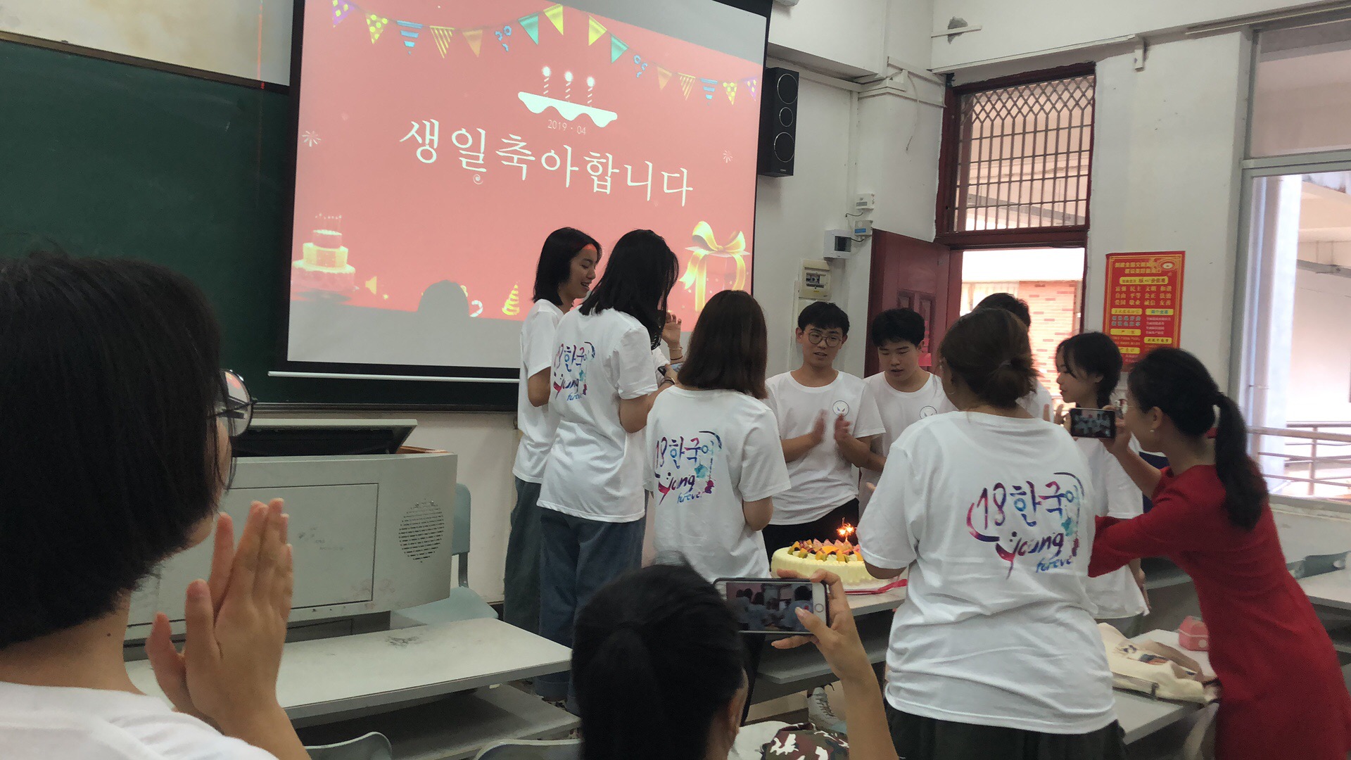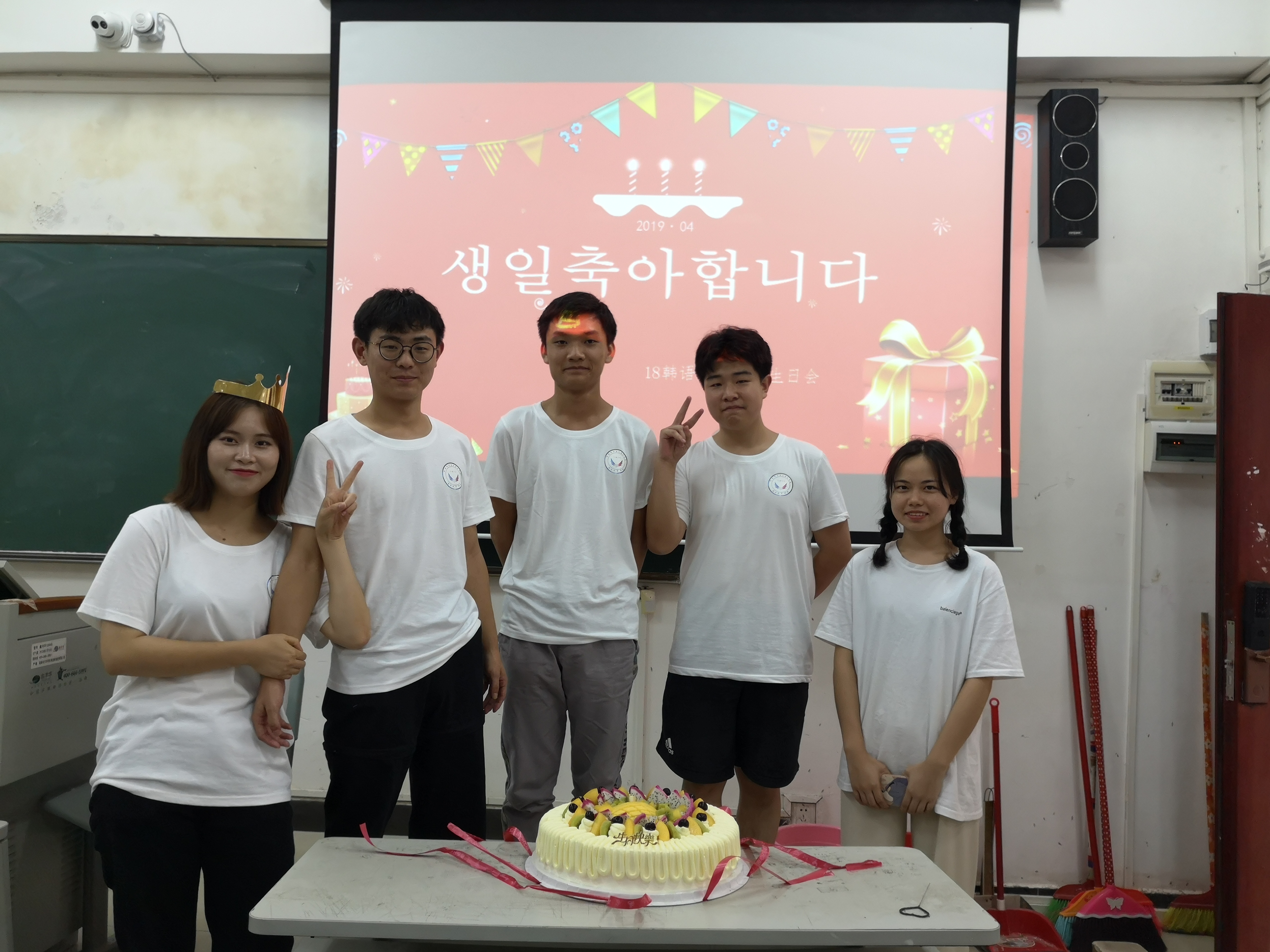 4月29日下午,18级应用韩语专业开展第三次集体生日会,本次集体生日会由王斯睿、梁昌丽、符良超三位班委成员负责策划、采购、安排等各个环节事项,同学们欢声笑语,共唱《生日快乐》,并开展了猜歌名、“我画你猜”等各项趣味活动。