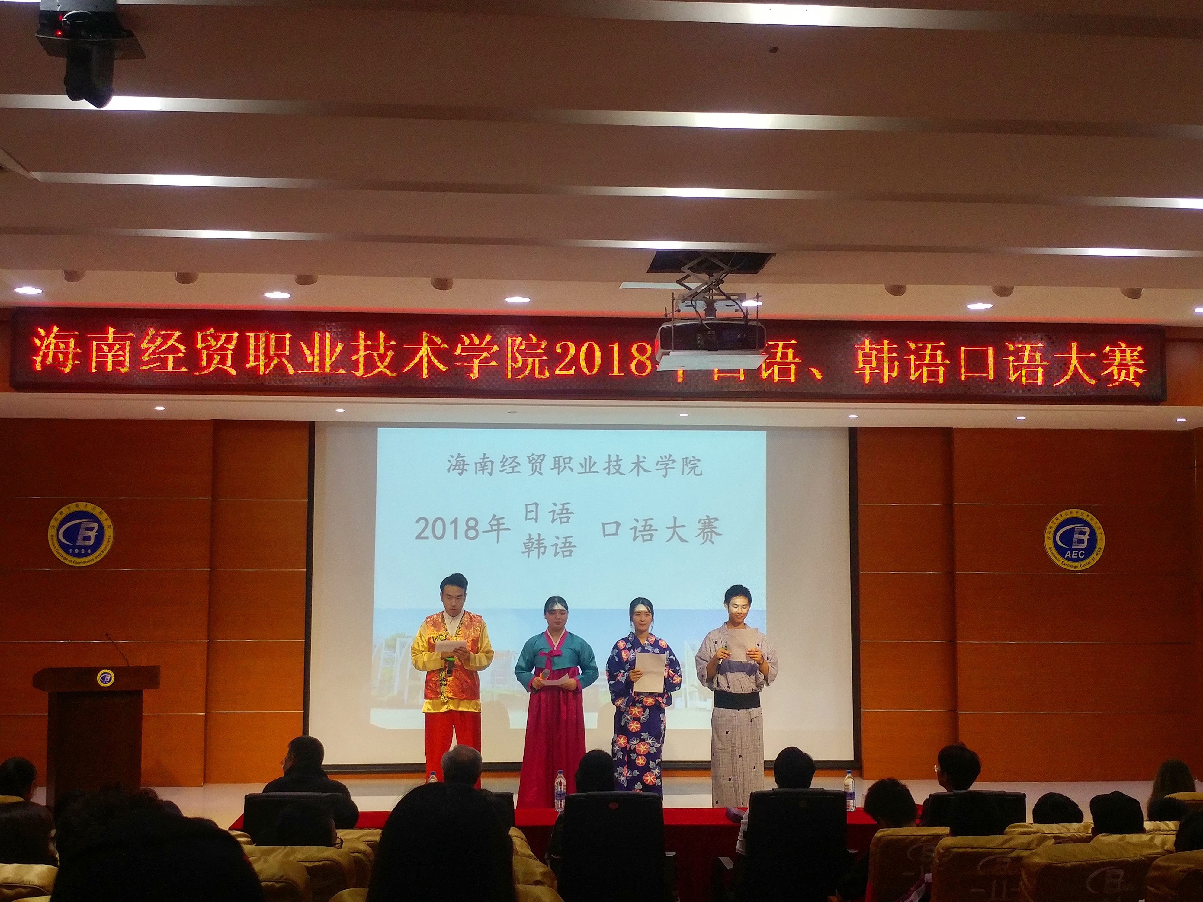 11月20日下午,公司2018年日语、韩语联合口语比赛在学术报告厅举行。本次比赛由国际教育公司应用日语和应用韩语共同承办,旨在增加公司日语和韩语专业员工学习好所学专业外语的激情,为同学们提供一个展示自己才艺,展示自己日语和韩语语言能力的舞台。