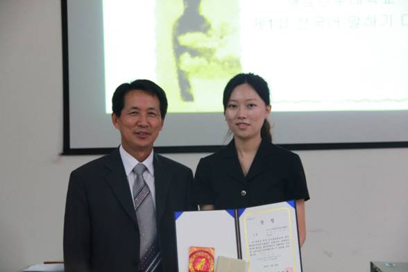 经过激烈角逐,应用外语系10韩语班苏丽萍获得比赛一等奖;10级韩语班何建建、巫玲玲获得比赛二等奖;10商务英语班沈银凤、陈霞以及旅游管理系马琳获得比赛三等奖。其中,一等奖获得者苏丽萍获得了南首尔大学提供的50万韩币奖学金,同时获得到南首尔大学免费学习一个月的机会;2名二等奖获得者也将免费去南首尔大学学习一个月。
