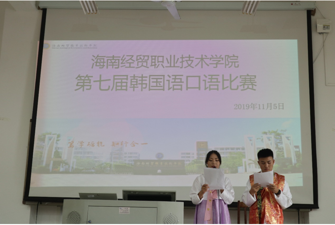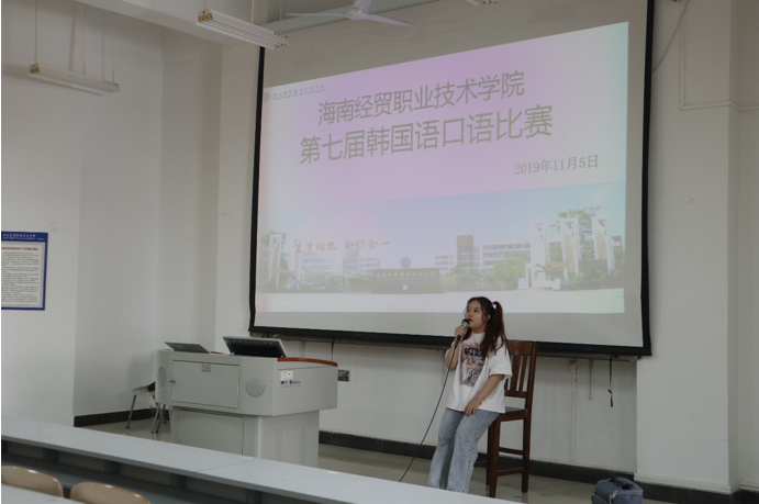 11月5日,1-421教室座无虚席。由bevictor1946韦德官网国际教育公司主办,韩语协会承办的第七届韩国语口语比赛在此顺利举行。应用韩语专业外籍教师徐荣儿老师、车昭姬老师;应用韩语专业专职教师路冉老师和刘倩老师应邀担任此次韩国语口语大赛的评委。