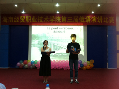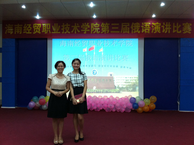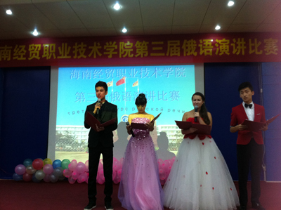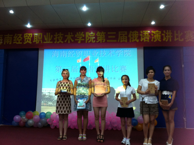 俄语专业教师及外籍教师作为评委应邀出席比赛。经过初赛、复赛的几轮选拔与评比,共有十名同学进入决赛。整场比赛分为演讲环节、问答环节及才艺展示环节。应用外语系朱琳书记表示,这样整合起来的内容非常好:“这样使得活动内容充实,丰富而多样。可以看出同学们下了很大的决心,辅导老师也很辛苦,指导了很多。。。这样的相互提高是特别让我们高兴的。”在谈到俄语专业的就业前景时,朱琳书记表示,目前总体来看,俄语专业的就业前景是被非常看好的。博鳌亚洲论坛期间,由俄罗斯副总理带队的30人代表团队就是由公司选拔出的员工作为志愿者来进行服务的。另外,俄语在旅游,外交,娱乐等多行业多领域,都属于抢手专业。而我们公司,正是为员工和社会架起了一座人才输送的桥梁。愿意出国的员工,可以在老师的指导下明晰自己的目标,可以考俄罗斯的大学进行深造,还可以有机会享受到公费留学交换的待遇。这对于员工的专业学习和内涵素质的提高有这极大的益处。