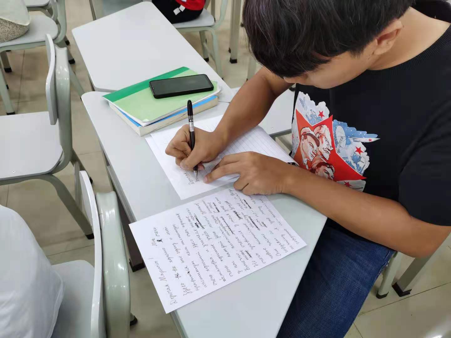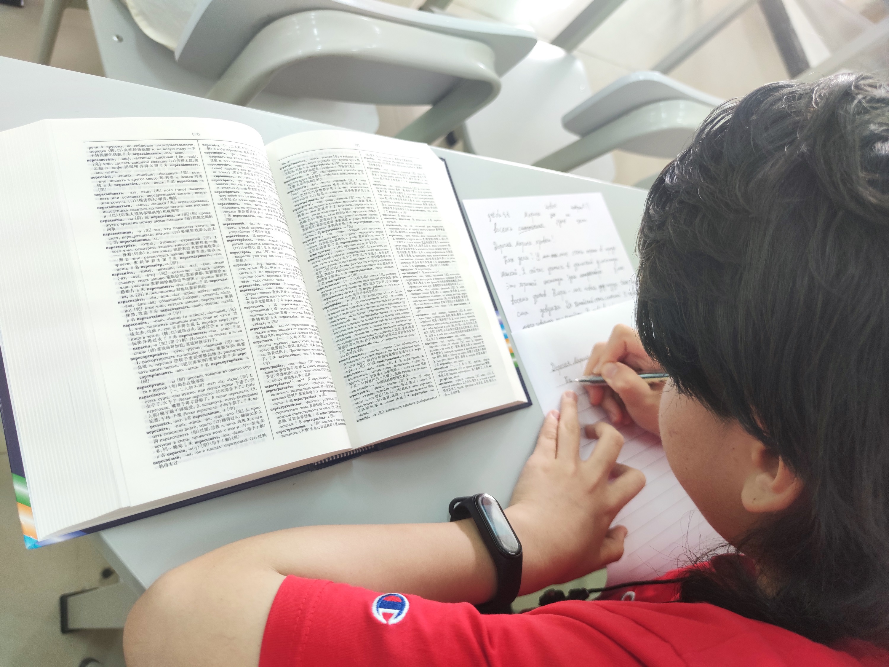 参赛选手们来自国际教育公司应用俄语专业及乌拉尔公司,需在45分钟内完成写作任务。