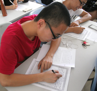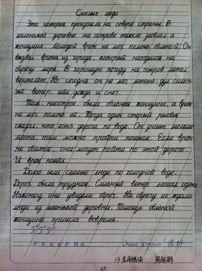 为了激发公司俄语专业及非专业员工学习俄语的兴趣,提高俄语学习的自信,丰富员工的校园文化生活,促使大家更熟练、快速掌握俄语,俄语协会在2013-2014第二学期4月-5月举行为期一个月的俄语文化月活动,包括俄语书法比赛、词汇比赛(中俄员工互动交流)、俄语演讲比赛。 2014年4月15日下午2点在1-204教室举行第二届俄语书法比赛。 俄语是一门非常优美的语言,她的字母分为手写体和印刷体。印刷体整齐大方,手写体则优美流畅。正确美观的书写是学好一门语言的重要部分,熟练地掌握书写规则不仅有利于提高书写速度,同时也有利于日后的工作和交流。 本次活动全体俄语协会同学们积极参与其中,比赛内容是抄写《勇敢的人们》。 比赛评委由四名俄罗斯职工担任。评委对每一位同学的作品都非常认真、她们帮助同学们找出作品中字母、语法、甚至是标点符号有错误的地方。 通过这次书写比赛,锻炼了大家的书写能力,也让同学们感受到了俄语文字的优美,对俄语学习更有信心。 在本次大赛中同学们表现优异,优秀作品展出供大家欣赏哦!(俄语协会供稿)