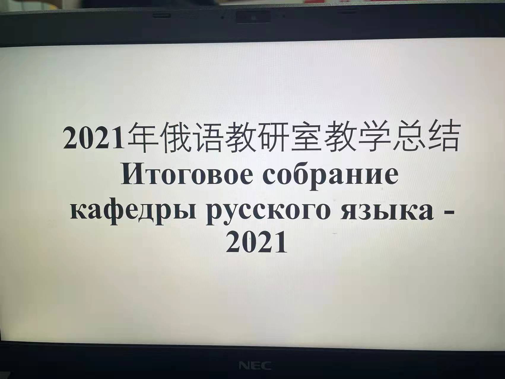 2022年1月13日下午应用俄语教研室全体教师在乌拉尔公司会议室举办2021年教学工作总结会议。应用俄语教研室主任周丽霞老师肯定了俄语团队所有老师们的辛勤付出,并感谢大家这一年为教研室所做出的努力。