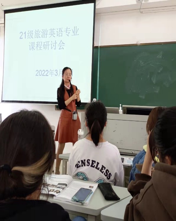 Ms. He introduced the teaching reform ideas and evaluation system. Everyone was particularly interested in value-added evaluation. After the meeting, the Tourism English studio continued to hold another meeting to make further discussion.