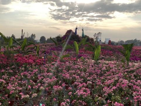 Wang Xuesu leads us to travel around the Lihua Valley, which is located in Banqiao, a beautiful town in Dongfang city. Looking ahead, thousands of flowers are in full bloom, competing for wonders and beauties. With the clouds and blue sky as background, it's a scene full of vitality! The valley was opened at the end of last year(2021), and now it is open free all day. Let's have a look while the flowers are blooming!
