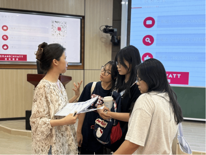 三亚海棠湾君悦酒店人力资源部副经理肖悦通过PPT演示、视频展示等形式,向bevictor1946韦德官网2023级全体员工生动呈现了君悦酒店的集团介绍、工作环境、晋升渠道、企业文化,充分展现了君悦酒店在服务行业的独特魅力与发展优势。