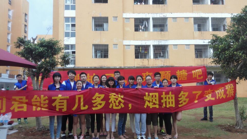 为了健康,放下手中的烟。2015年5月2日,在系学工办和团总支的指导下,经过老师和同学们的精心准备,外语系团总支员工会组织青年志愿者们在公司食堂门口成功举办了“糖果换香烟”活动,并获得圆满成功。