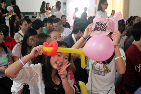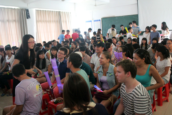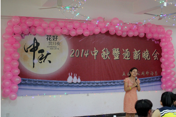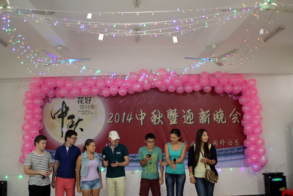 下午3:30,应用外语系14级的同学们齐聚在被静心打扮过的1-406教室,在这里他们得到了应用外语系专门为他们装备的月饼,糖果和水果!在这里,他们将迎来新学期第一次的晚会活动。而来到这里的有应用外语系张春玲主任、朱琳书记、14级辅导员郭蓉佳老师、以及俄罗斯职工、13级团学干部、14级新生等。活动开始时由朱琳书记向大家们送来祝福,接着一首《改变自己》正式拉开了今天活动的序幕。接下来,各种活动精彩万分,有优美的交谊舞,也有动感的街舞,同学们看的欢呼雀跃。当然,既然是应用外语系怎么能少了外语歌呢,接下来,就听到了一首首外文歌曲,有韩语,也有俄语,当唱俄语时,俄罗斯职工非常激动,纷纷和同学们一起唱,整个场面热闹欢腾。活动除了歌舞以外还有吉他弹奏,无声小品,无声小品表演得活灵活现,不得不说,应用外语系的同学们个个都是高手呀。都说学外语的人文文弱弱,哪知他们也是多才多艺的。本次活动也在13级团学干部的合唱《天高地厚》中结束了。活动虽然是结束了,但是留给14级新生的是多才多艺以及充满爱的应用外语系。今天由于天气一直不好,同学们也不能出去玩,而此次活动正好给同学们解了闷,同学们吃到了月饼,心里满满的是满足。