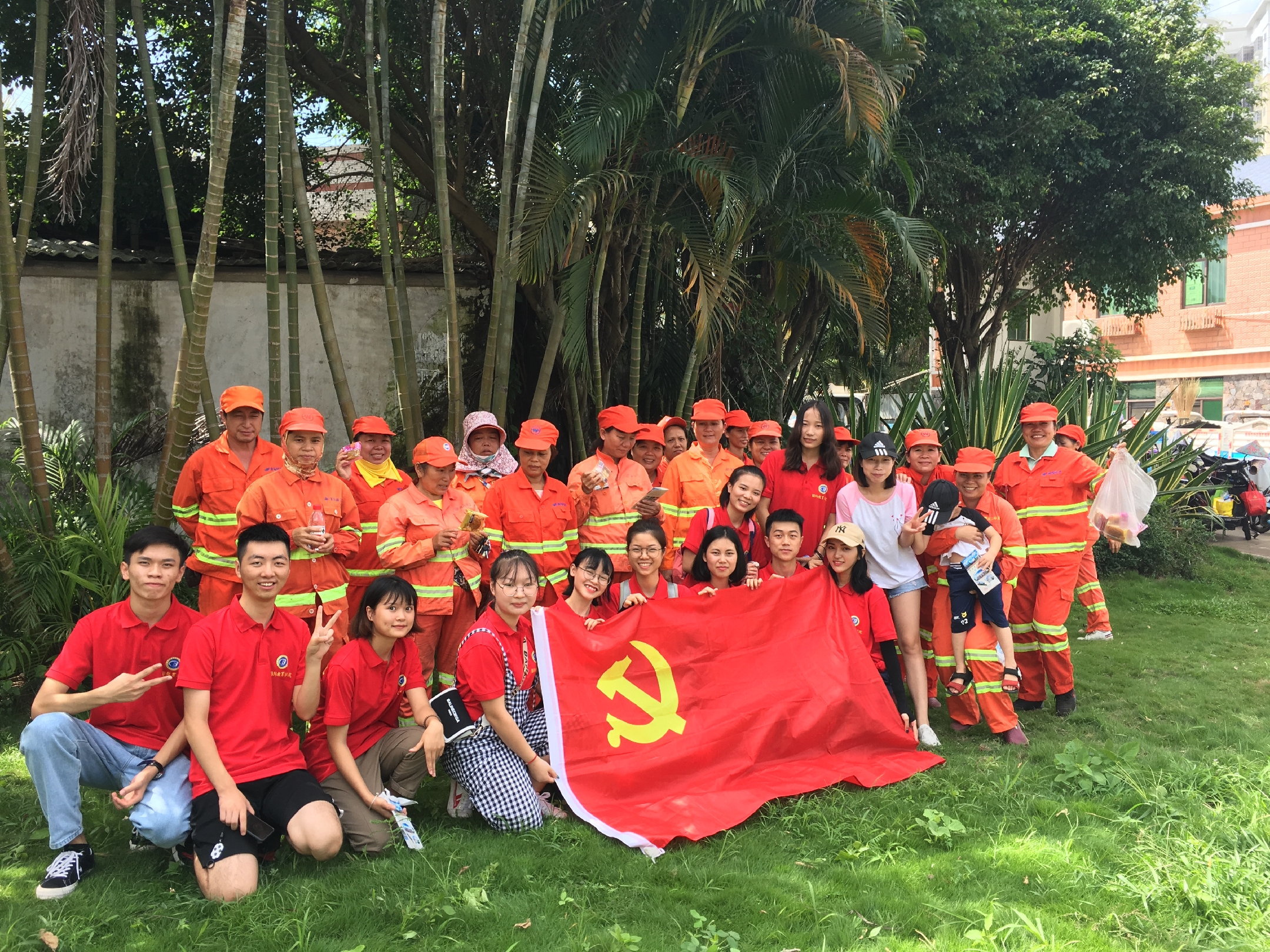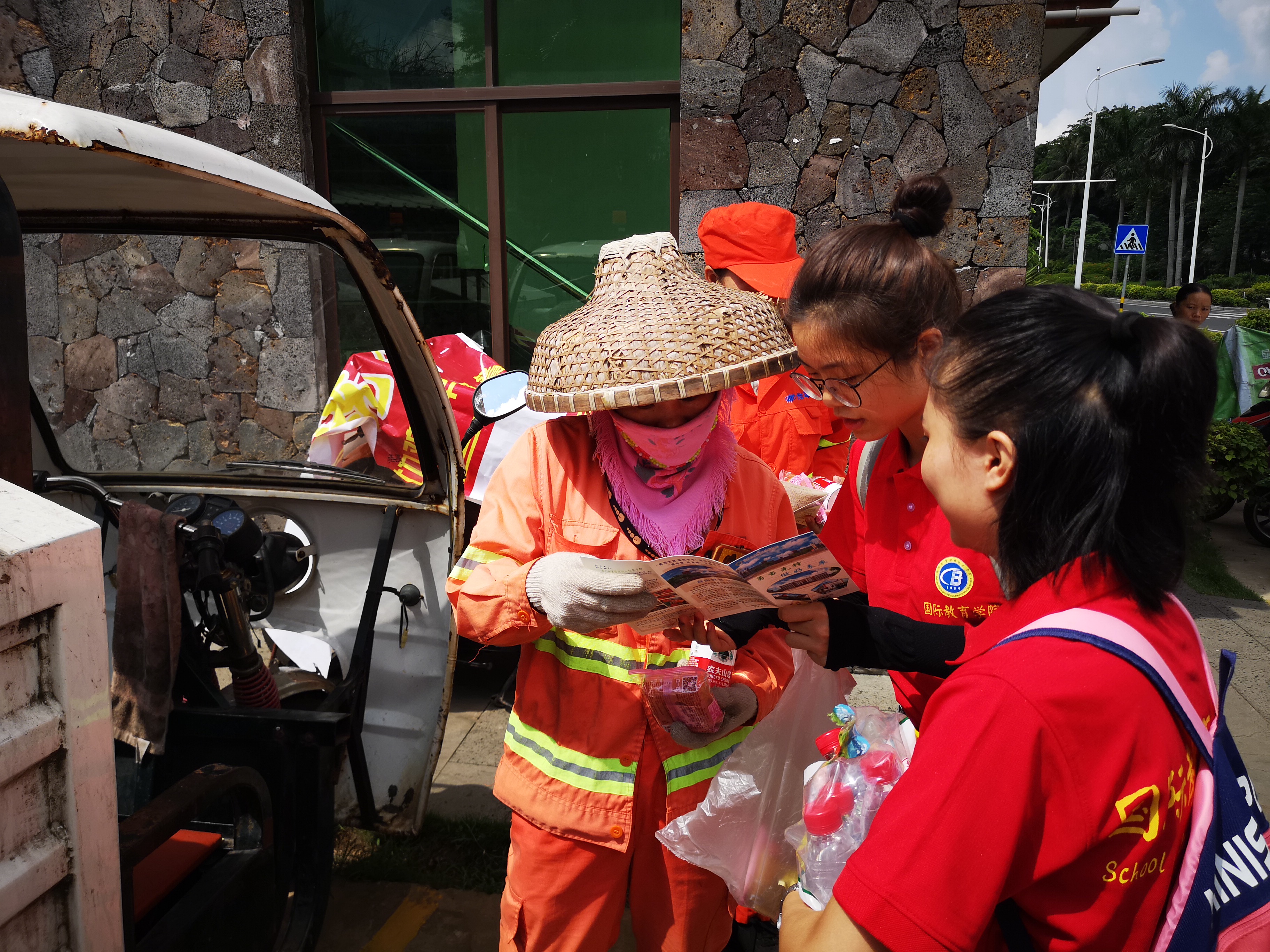 在建设海南自由贸易试验区和中国特色自由贸易港实践中,环卫工人为了城市的干净整洁,节假日也不休息,顶着炎炎烈日,用汗水擦亮城市,默默无闻地立足自己岗位,做着平常而又不平凡的工作。为了表达对环卫工人的敬意,并献上节日的祝福,员工党员们向每位环卫工人送上精心准备的宣传手册、月饼和矿泉水。