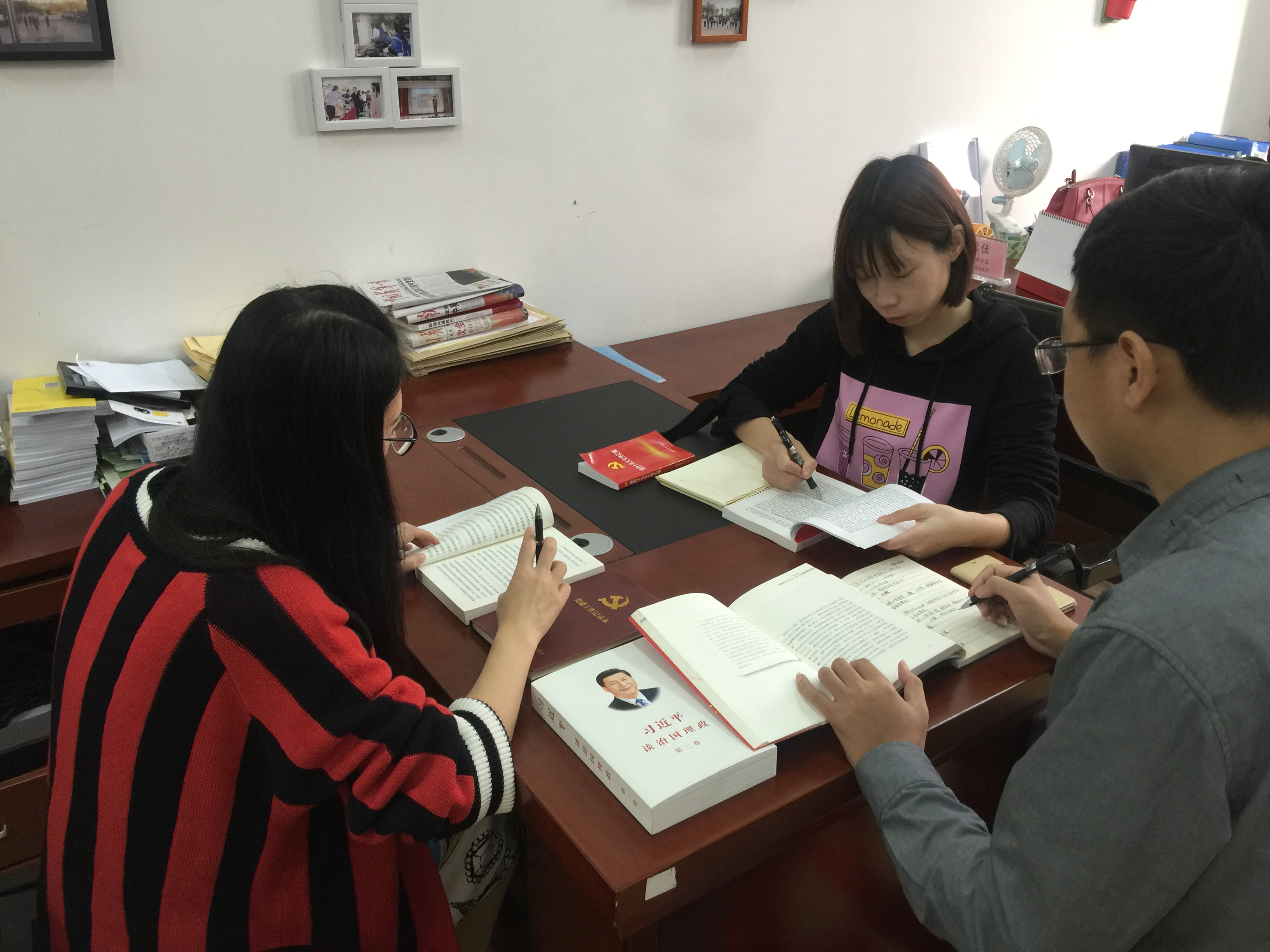 2017年10月27日下午5:00分,国际教育公司员工党支部书记郑艳在1-237办公室主持召开国际教育公司员工党支部全体委员会议。会上,郑艳首先传达了当天上午公司党委学习组开展的“党的十九大精神专题学习辅导会”主要内容。在学习和讨论交流过程中,全体参会人员对十九大报告的结构脉络、时代背景、伟大意义有了更深刻的了解和掌握,对自身作为一名共产党员, 尤其是一名基层党务工作者,在决胜全面建成小康社会,夺取新时代中国特色社会主义伟大胜利征程中所肩负的历史使命有了更清醒的认识。