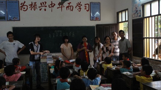 在询问当地灾后的生活及学习状况后, 志愿者们与三年级小员工开展了一个见面会,并为孩子们送上了崭新的书包、文具、书籍、球拍等。覃书记和孩子们亲切交谈,并送上了以个人名义购买的36本各类儿童书籍,希望他们能好好学习。随后,志愿者们还与孩子们开展了游戏等,看到一张张天真烂漫的面孔,清澈的眼神,让志愿者们感到很欣慰。志愿者们希望灾区人民的生活能够越来越好,并早日恢复重建。