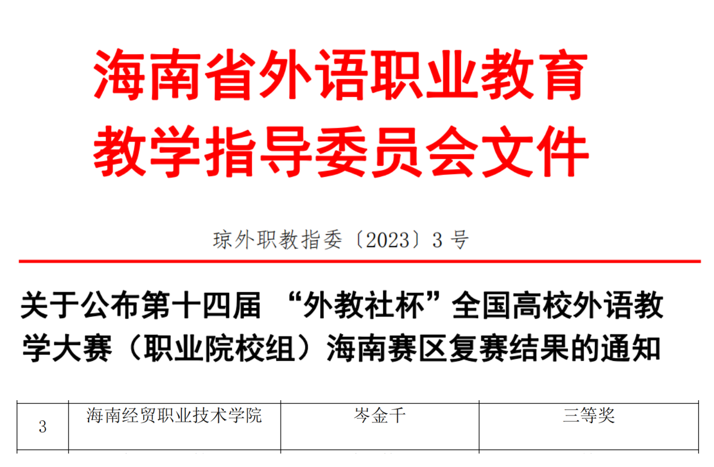 【喜报】公司教师喜获第十四届 “外教社杯”全国高校外语教学大赛(职业院校组)海南赛区复赛三等奖