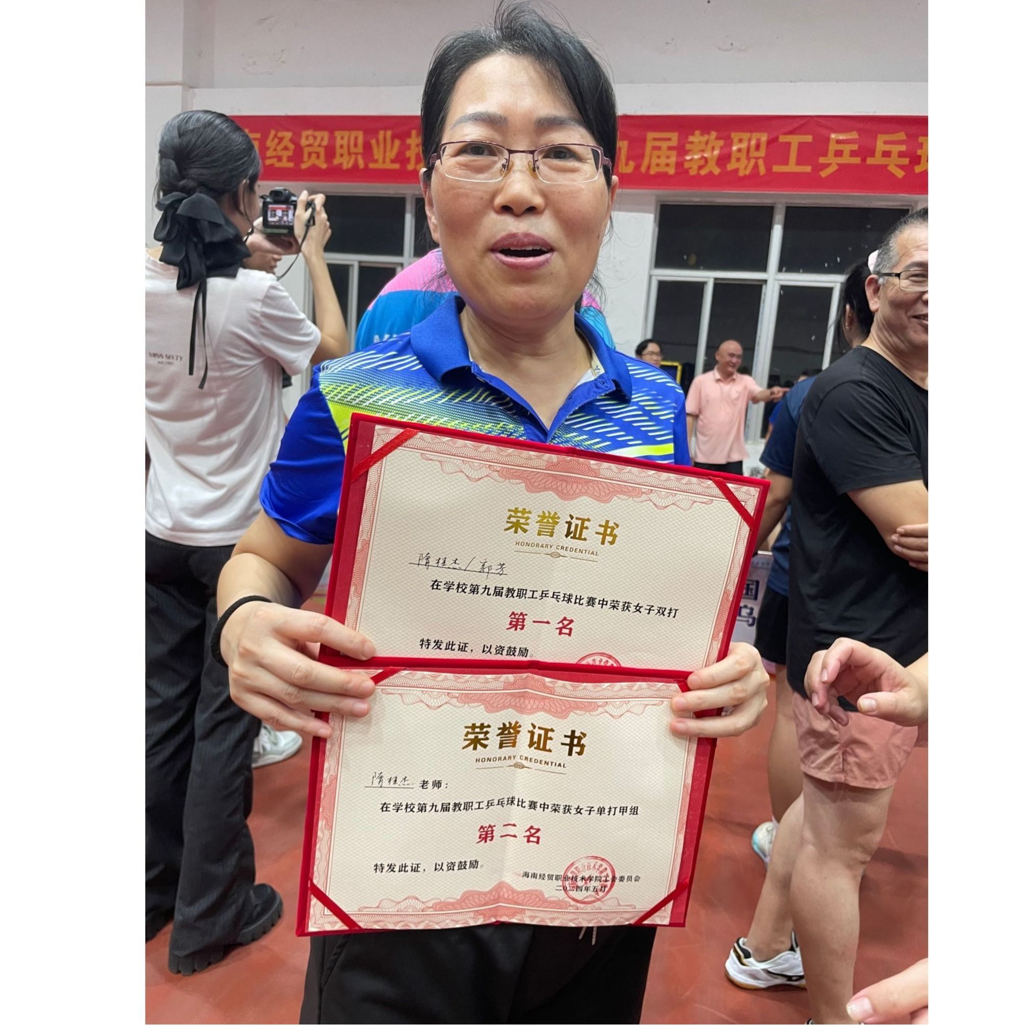 特别值得一提的是,隋桂杰老师在本次比赛中大放异彩,凭借出色的球技和稳定的发挥,荣获女单第二名和女双第一名的优异成绩。她的精彩表现不仅为公司争得了荣誉,也赢得了在场观众的阵阵掌声和喝彩。