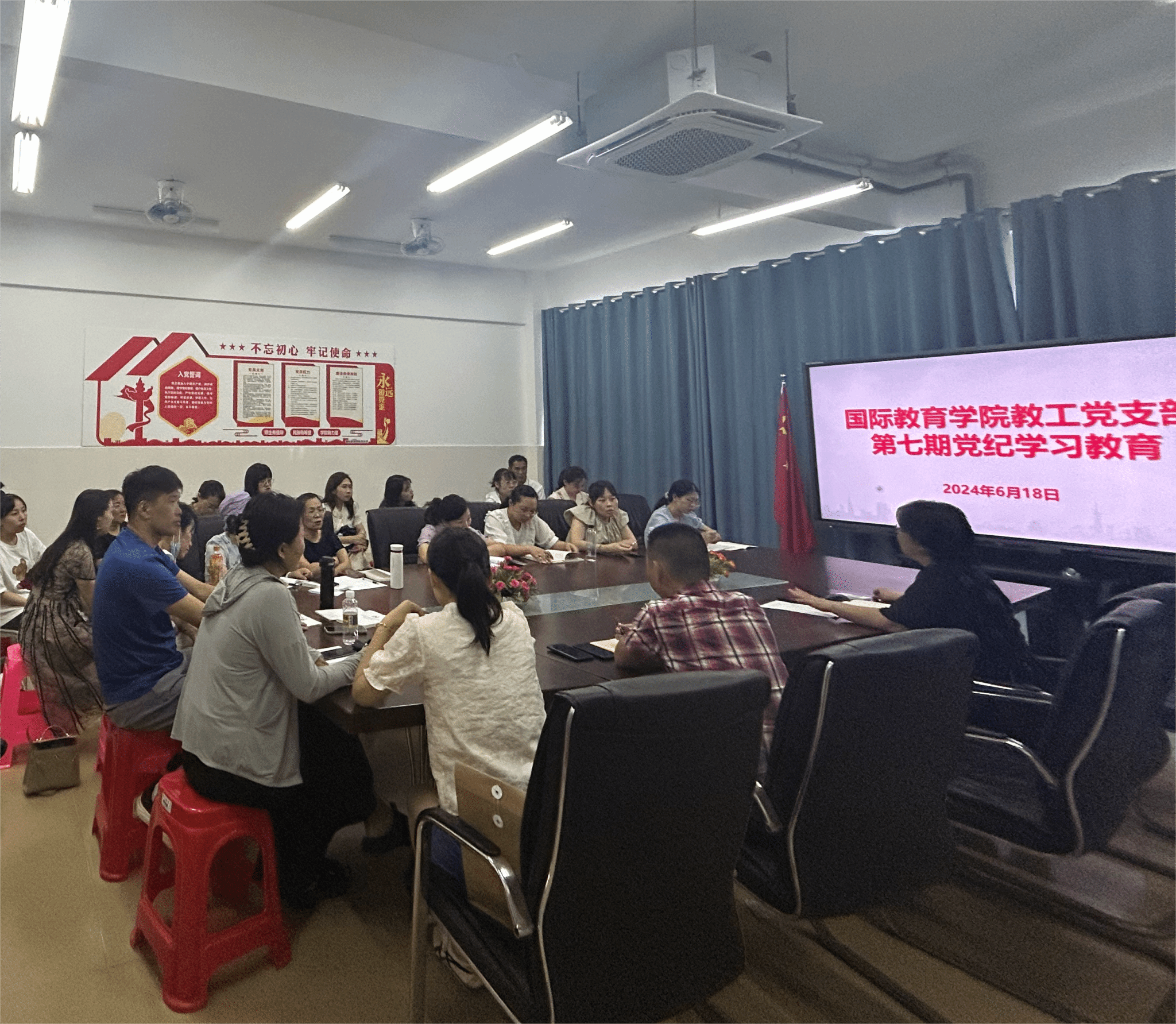 2024年6月18日,国际教育公司教工党支部在5-405开展了第七期党纪学习教育会。会议由教工党支部书记主持。