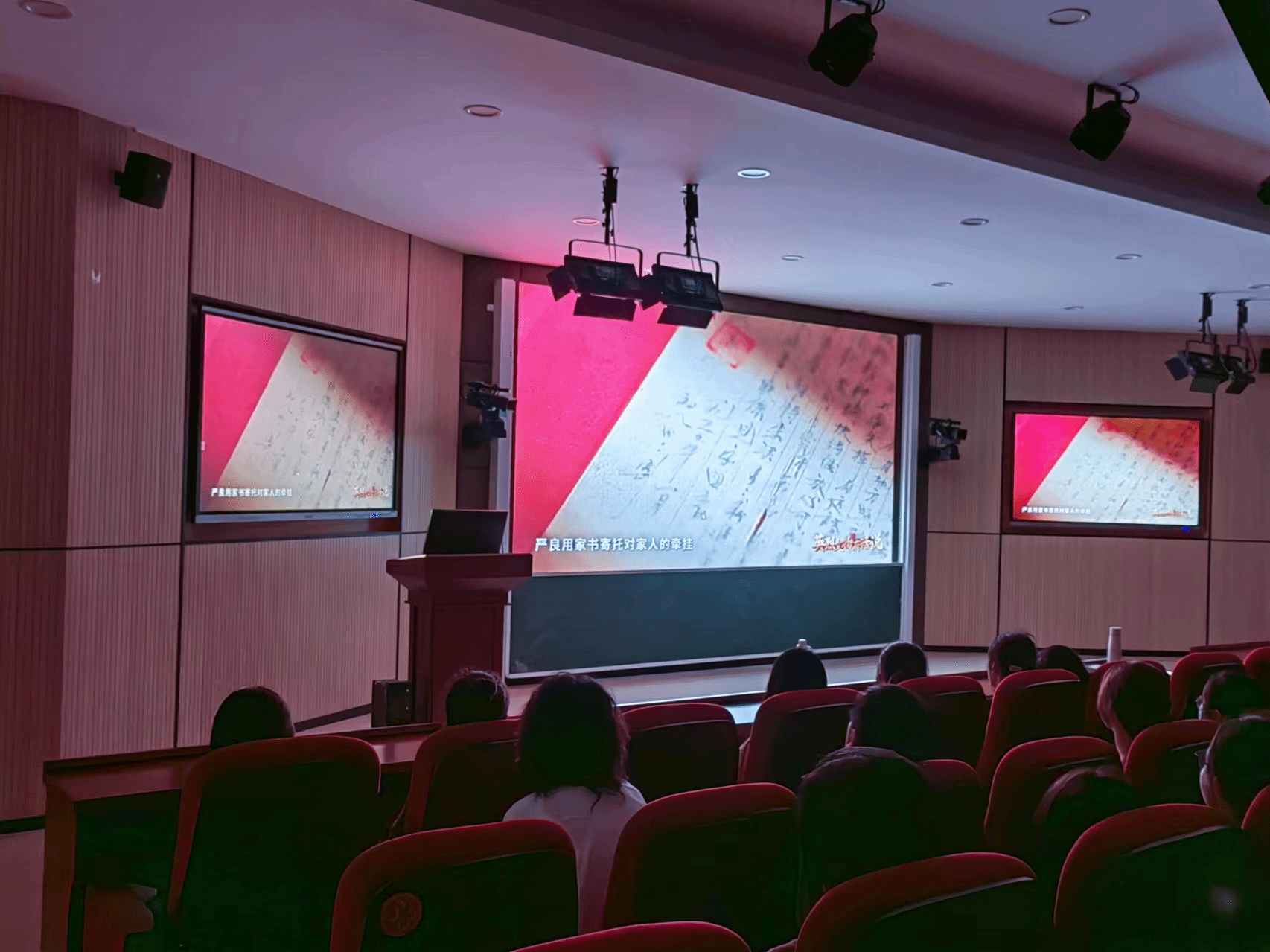 随后,大家观看了一部反映革命历史的纪录片。一本书,一封信,当时不过是寻常痕迹,却见证了先辈对革命的坚守,对信仰的忠贞。在新中国走过的岁月里,英烈以热血铸就红色,无言之物亦有千言万语。本片通过英烈文物有“话说”的故事,展现广东烈士的英雄事迹,传承烈士精神,凝聚奋进力量。