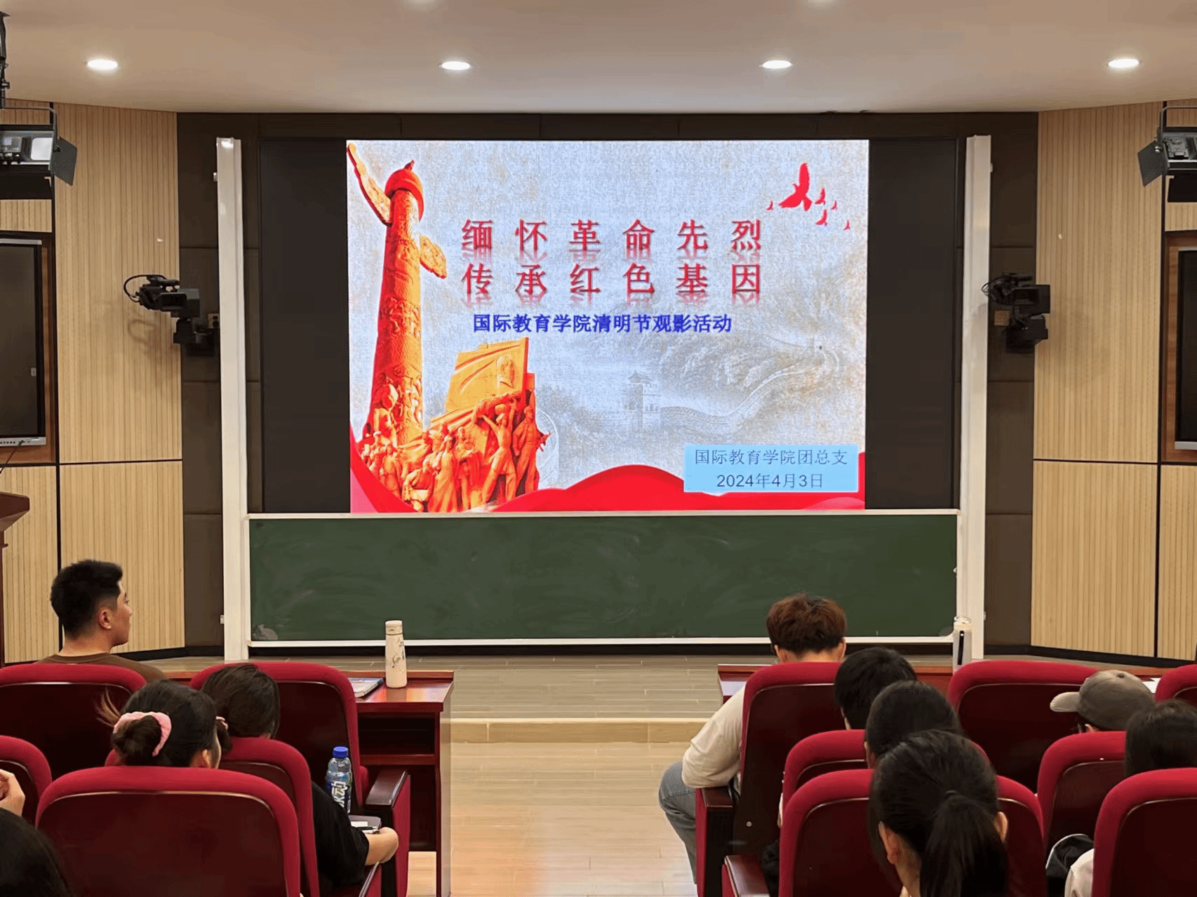 2024年4月3日下午,正值清明节来临之际,国际教育公司在这个特殊的日子里,于1-421教室举办了一场别具意义的爱国主义观影活动。本次活动由国际教育公司团总支负责人孔凯带领全体团学青干部和入党积极分子共同参与,旨在通过观影的方式缅怀革命先烈,传承红色基因。