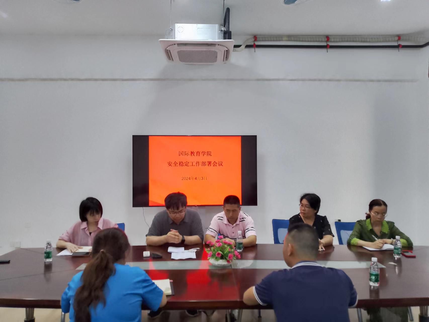 2024年4月3日,国际教育公司在5-411会议室召开安全稳定工作部署会议。国际教育公司党总支书记于勇、韩大伟经理、黎瑛副经理、郑艳副书记、刘莉副经理以及学工办、教务办、党政办主任参加了会议。