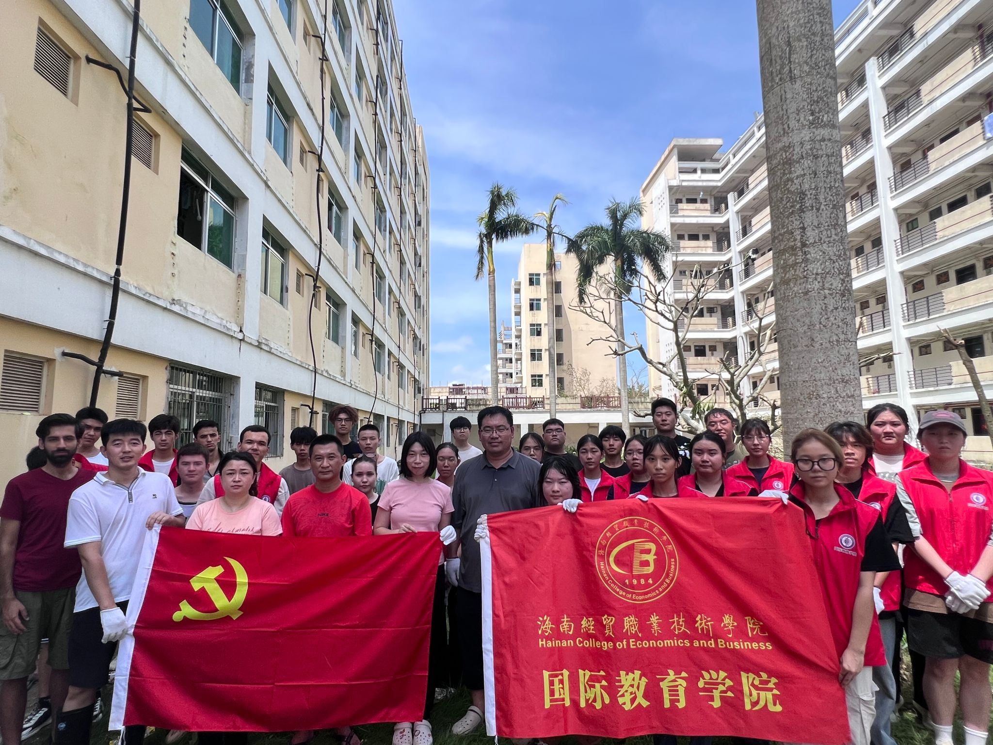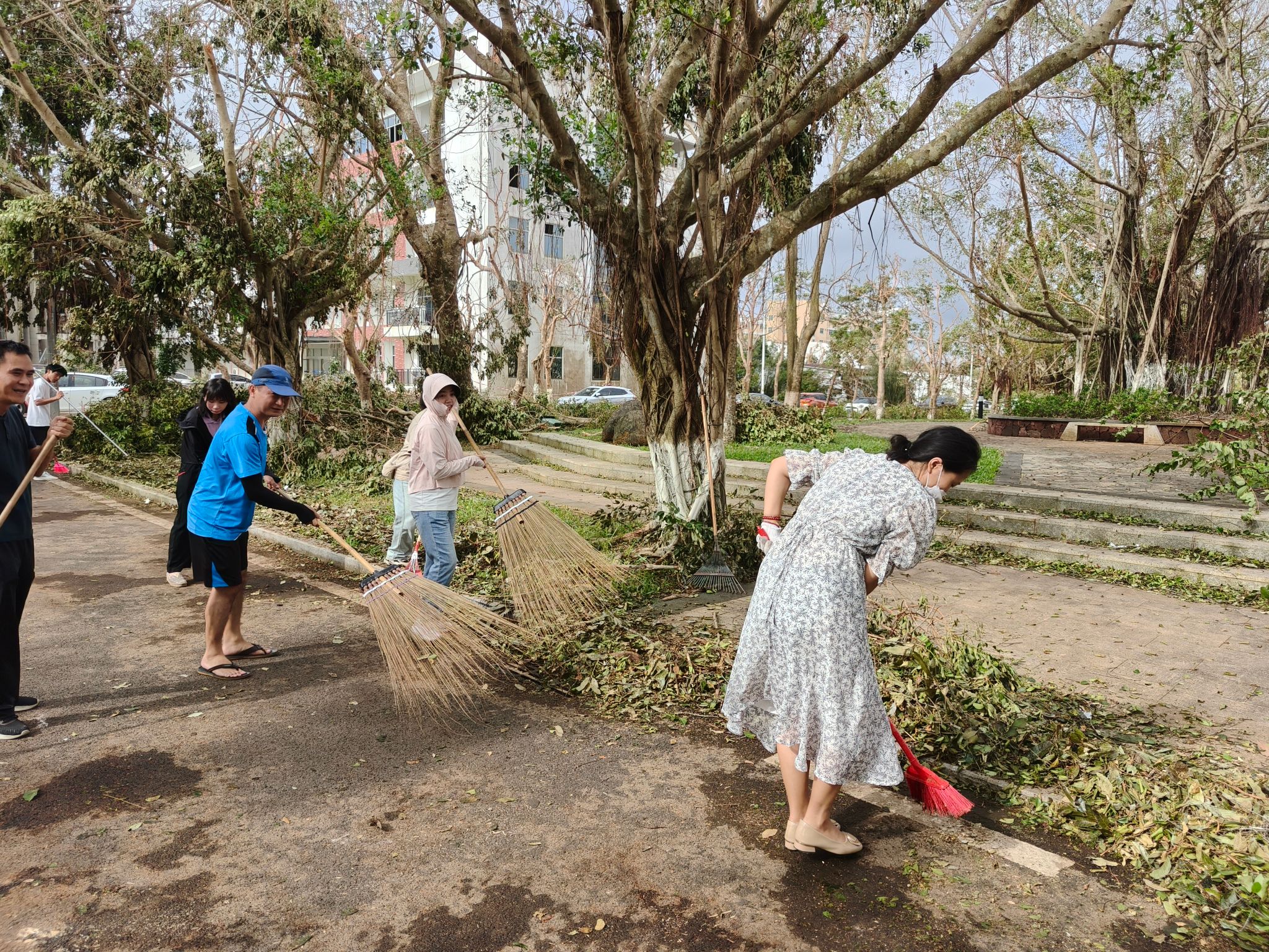 在台风“摩羯”肆虐过后,国际教育公司全体教师展现出了非凡的团结与担当精神,迅速响应,积极投入到救灾与校园重建的艰巨任务中。党总支书记于勇同志以身作则,亲自挂帅,带领二级公司领导班子成员及全体教师和员工志愿者,不畏艰难,顶着炎炎烈日,深入受灾一线,用实际行动诠释了责任与奉献。