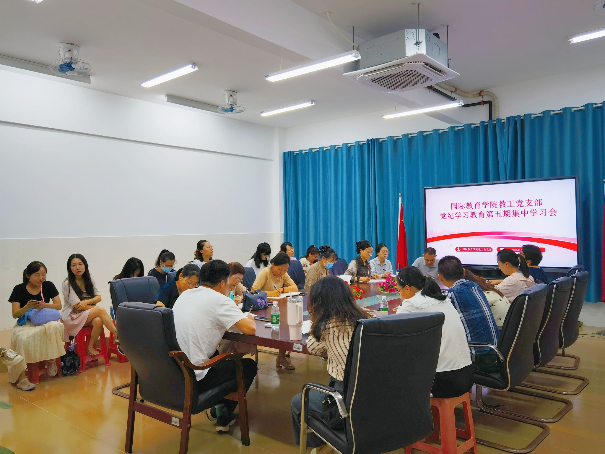 2024年5月21日下午,国际教育公司教工党支部在5-405开展了党纪学习教育第五期集中学习会。支部全体党员集中学习并观看视频《加强纪律建设是全面从严治党的治本之策》。