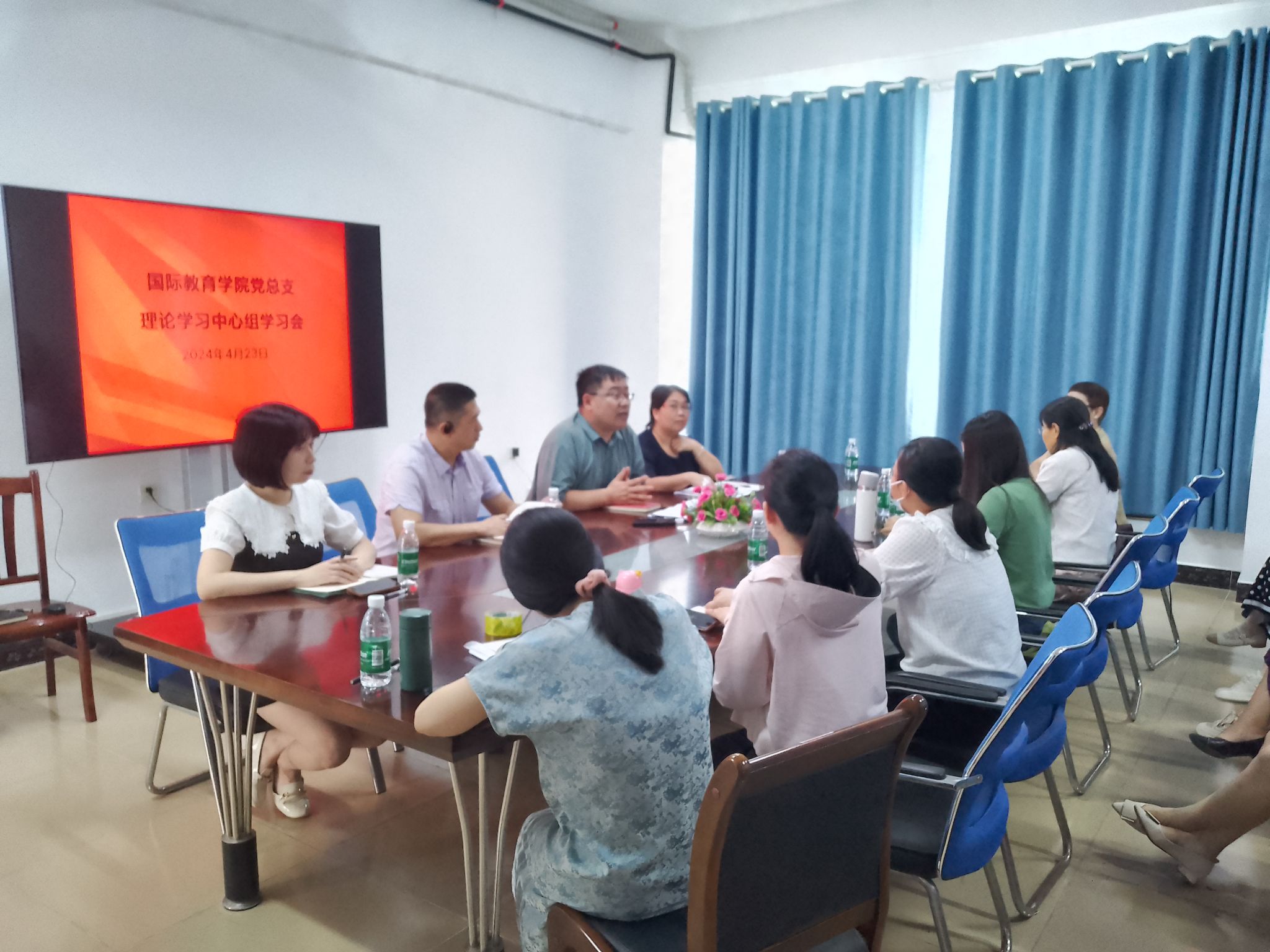 2024年4月23日下午,国际教育公司党总支理论学习中心组在5-411召开党纪学习教育第一次集中学习会。党总支书记于勇主持会议,公司班子成员、理论学习中心组成员参加学习。