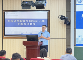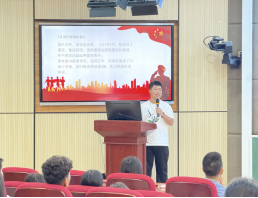 2025级新生辅导员孔凯,围绕员工日常管理讲解公司和公司的各项规章制度。2023级应用日语专业员工潘翔,以退伍军人和暖心学长的身份,从军旅生涯、校园生活、创业经历三个方面分享个人成长故事。