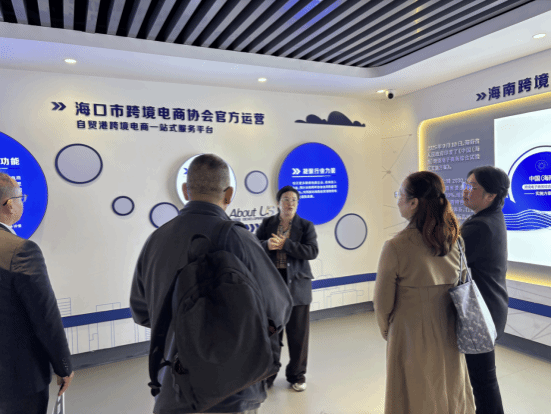 1月6日,调研团队前往海口市跨境电商协会自贸港跨境电商一站式服务平台秀英区运营中心调研。通过参观中心整体布局与公共服务区域,了解其在推动区域电商产业发展中的功能与作用。随后,与中心负责人海口市跨境电商协会会长、海南您好传媒科技集团有限公司法定代表人阮宁女士进行座谈,重点探讨跨境电商在运营、推广、客服、物流等环节对外语能力、跨文化沟通能力及国际贸易知识的具体要求,并就校企合作开展实战培训、项目孵化等议题进行深入交流。