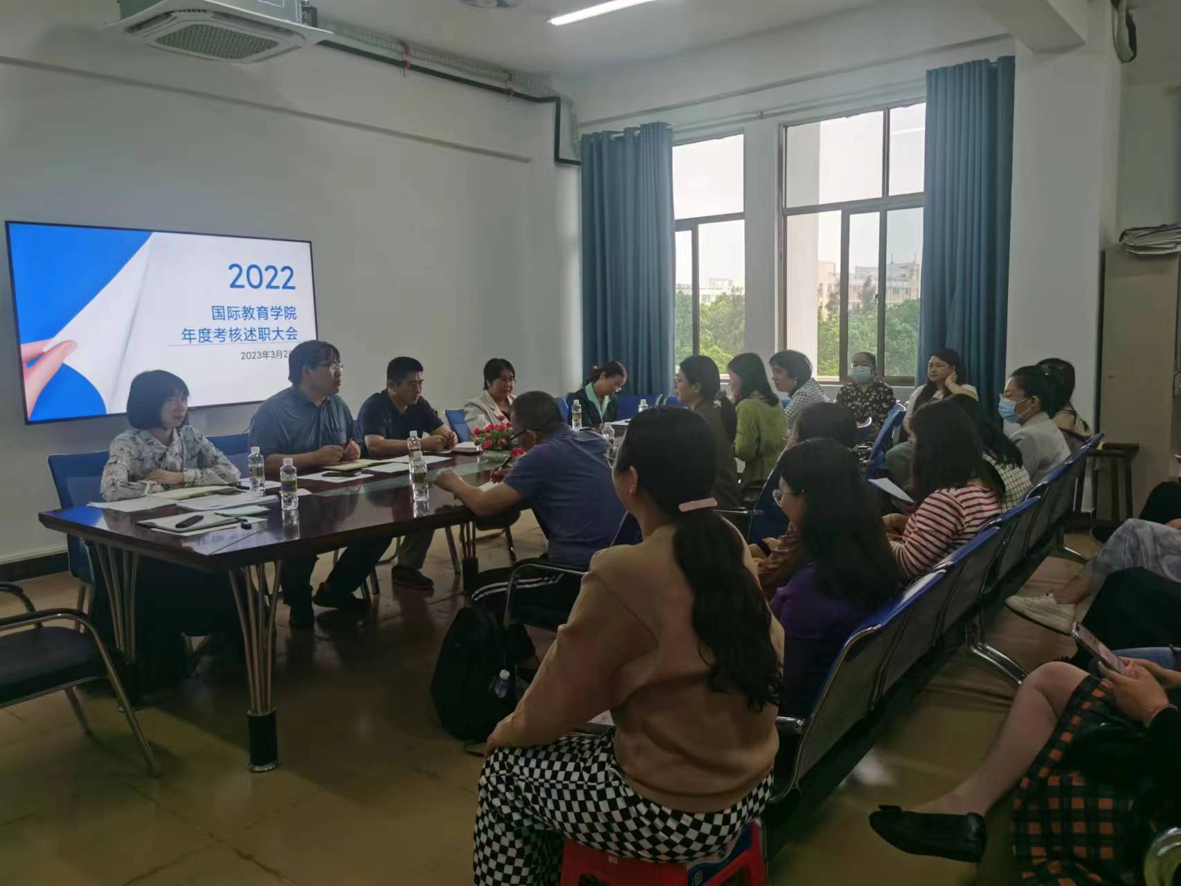 为深入推进国际教育公司工作,切实做好2022年年度考核,3月28日下午,国际教育公司在5-411召开2022年度国际教育公司教职工考核述职大会,全体教职工参加了会议,会议由国际教育公司党总支书记于勇主持。