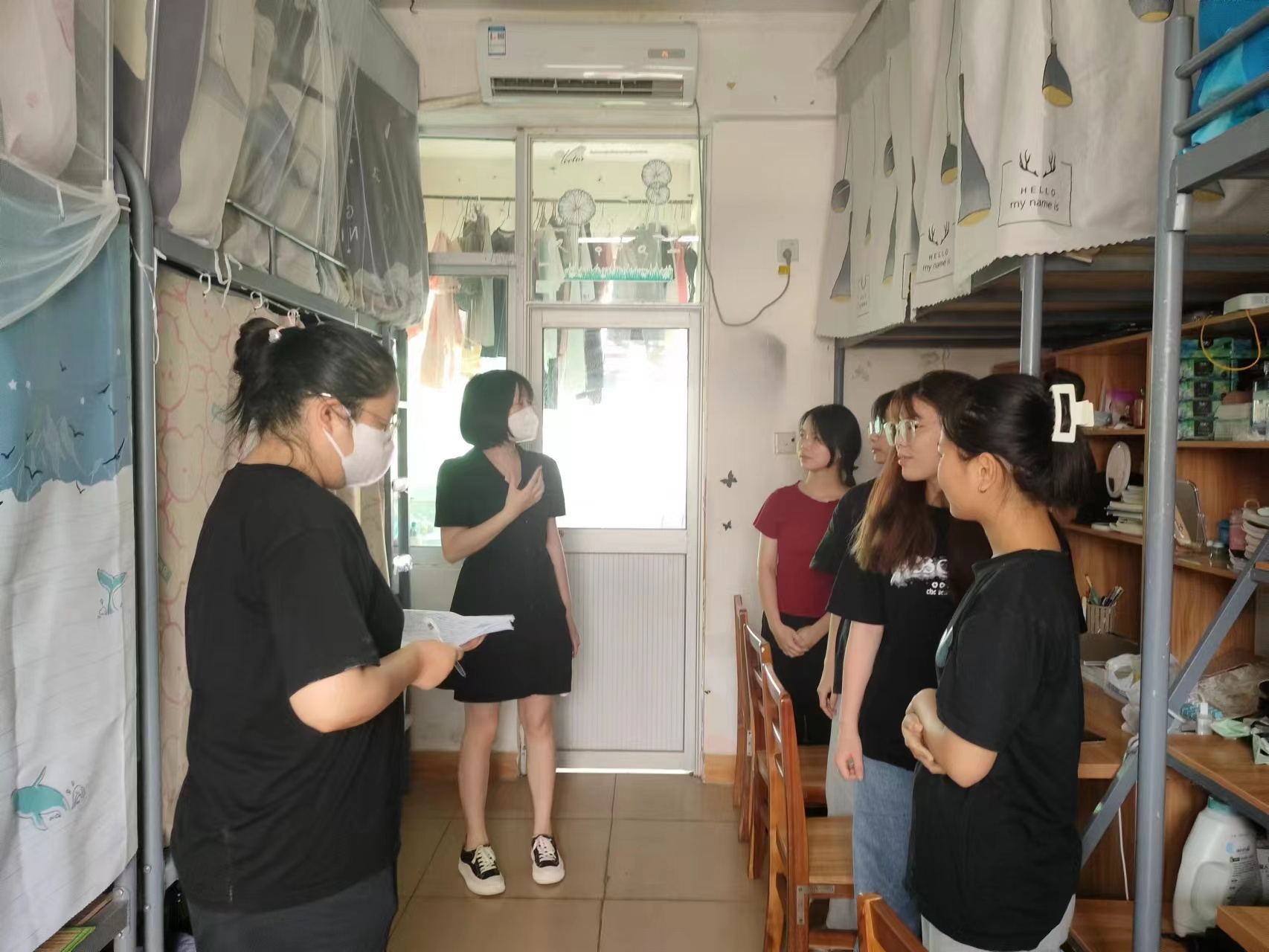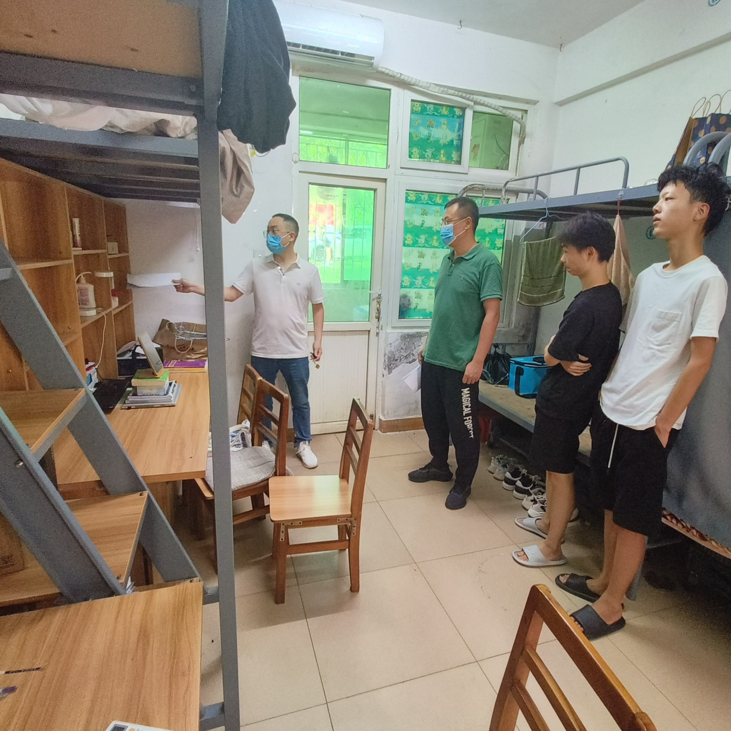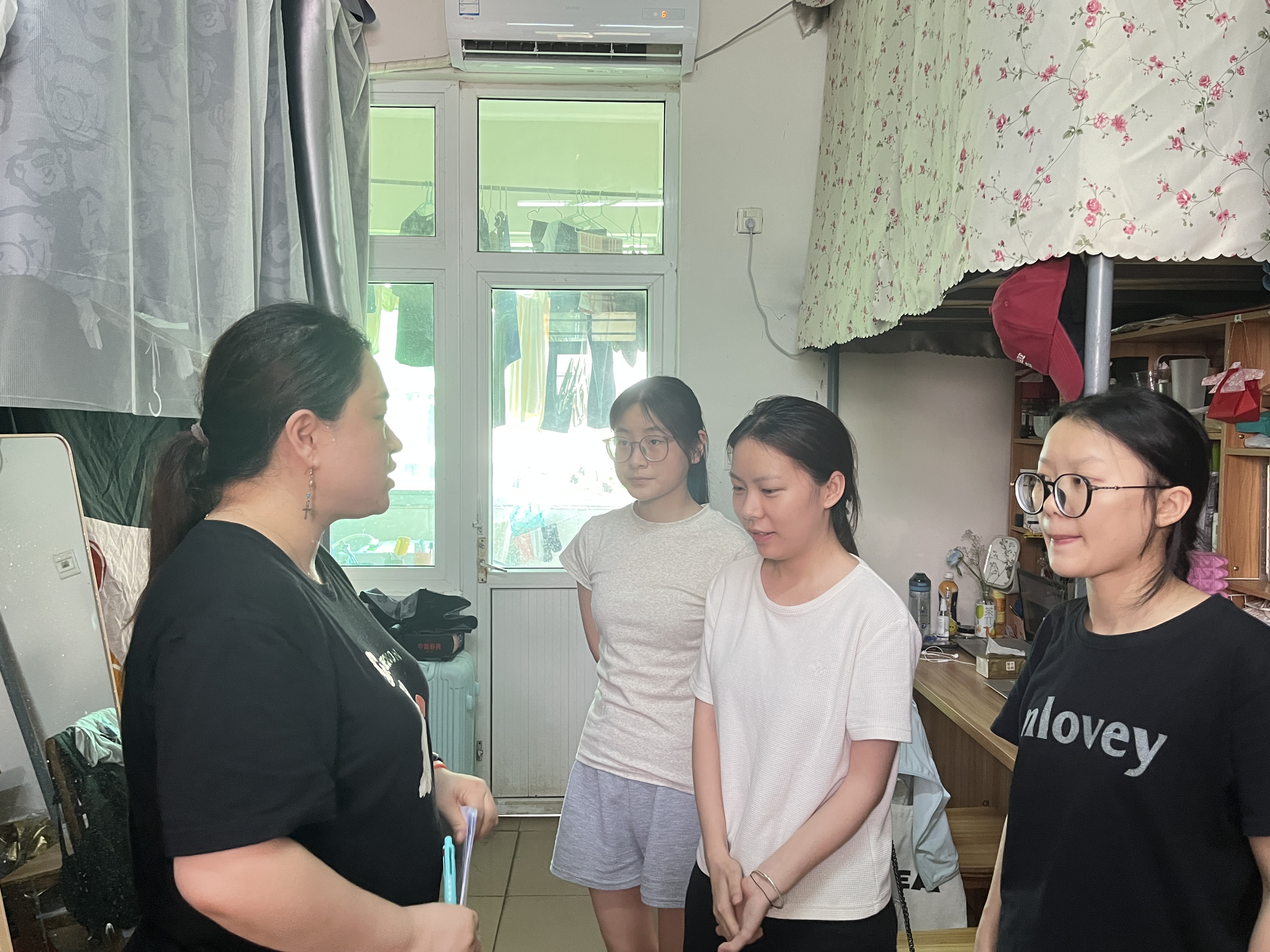 5月23日下午,国际教育公司党总支副书记郑艳带领全体辅导员和部分党员、入党积极分子深入员工宿舍,逐一走访每间宿舍,了解员工的学习和生活状态,并对安全文明宿舍建设进行现场检查督导。