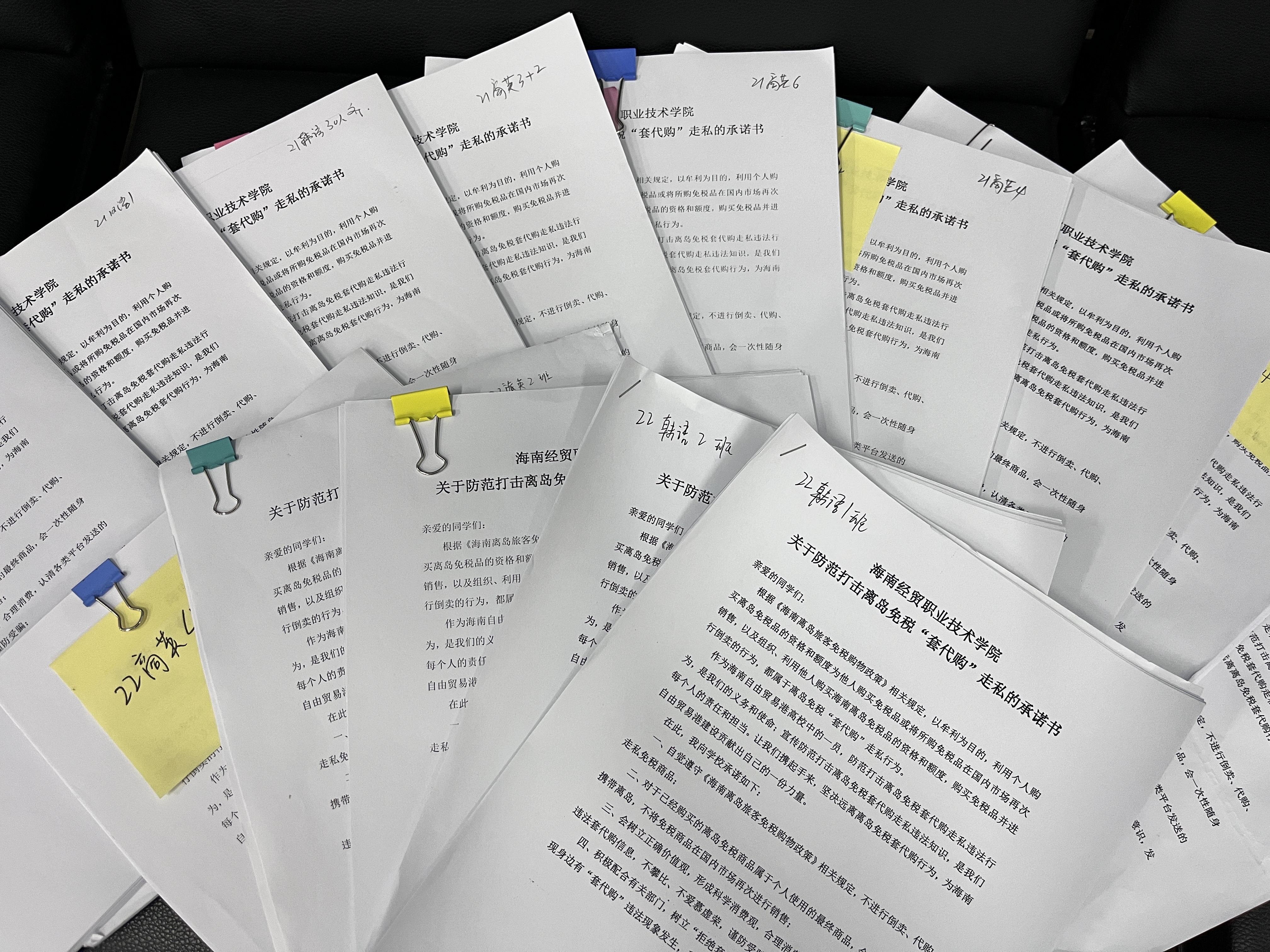 国际教育公司通过班级群、微信公众号等平台进行普法宣传,组织员工观看海南开展防范离岛免税“套代购”走私违法犯罪普法云直播。中外员工共计46个班级通过线上线下相结合的方式召开抵制“套代购”主题班会,宣传相关法律法规和离岛免税政策。每位员工通过线上线下的方式签署关于防范打击离岛免税“套代购”走私的承诺书,确保精准警醒,增强员工的责任意识和法律意识,教育覆盖率达到100%。