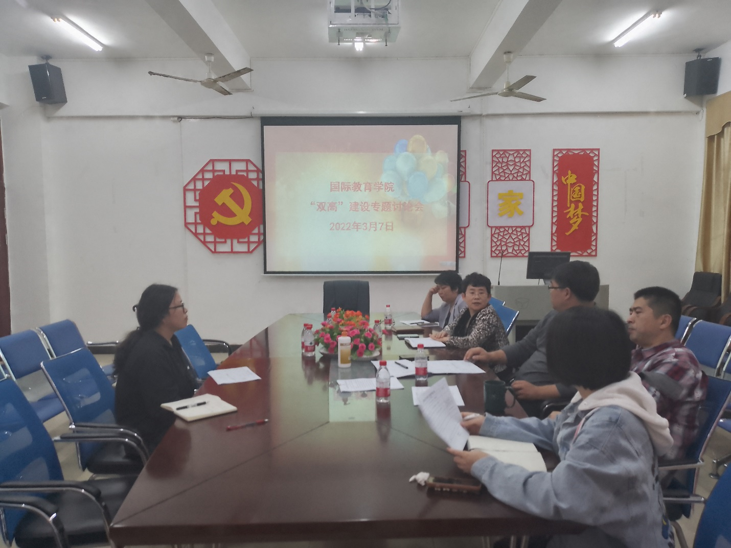 2022年3月7日,国际教育公司党总支在1-323会议室召开了“双高”建设专题讨论会,国际教育公司党总支书记于勇、张春玲经理、黎瑛副经理、韩大伟副经理、郑艳副书记参加了此次会议。会上,于勇书记指出,“双高”建设中的的经费支出应更加符合国际教育公司实际需要,针对各项目的轻重缓急调节预算方案,尤其是做好职工招生、签证录取材料办理、国际教育公司英文网站方面建设的经费预算。此外,他还指出当前双高申本工作迫在眉睫,各专业带头人应集中精力,狠抓工作落实,切实推动申本工作建设。