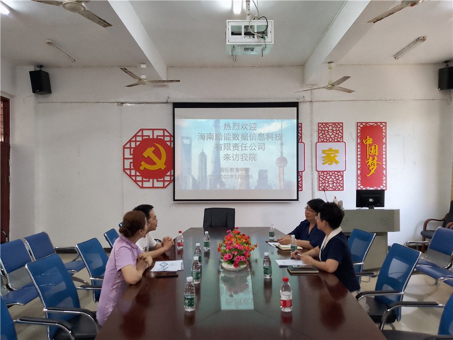 同时,海南励能数据信息科技有限公司来校与国际教育公司经理张春玲、副经理黎瑛、商务英语专业负责人刘莉老师就员工实习就业方面进行洽谈。