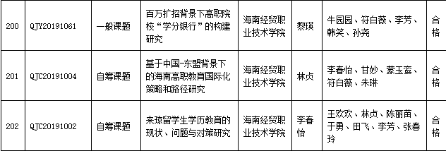 根据海南省教育科学规划领导小组办公室2022年度工作部署和《海南省教育科学规划课题管理办法》的有关规定,省教育科学规划领导小组办公室于2022年5月17日至20日组织开展了省教育科学规划课题2022年度集中结题活动。公司教师黎瑛、林贞、李春怡主持的3项课题顺利结题(详见下表)。