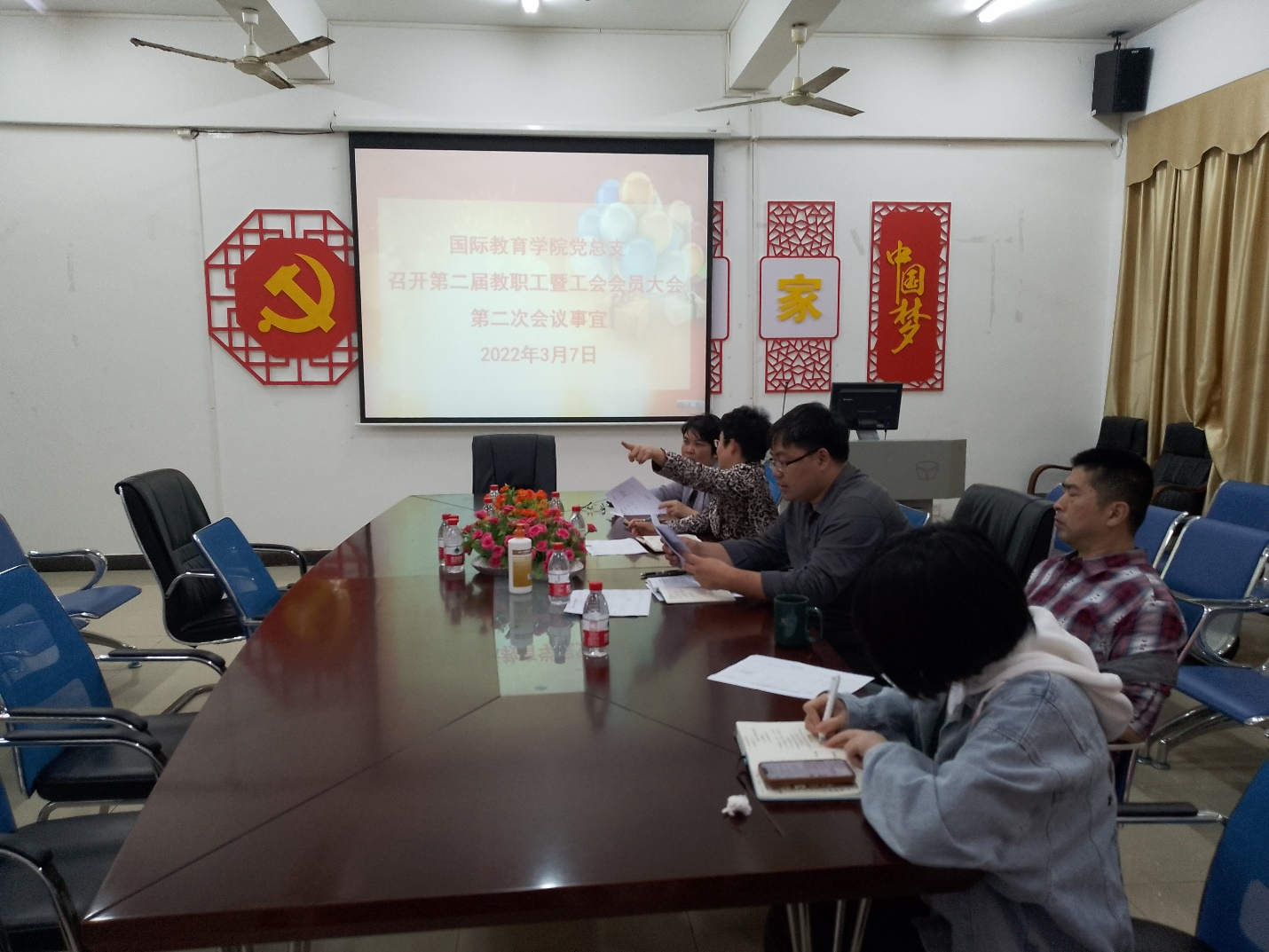 2022年3月7日,国际教育公司在1-323会议室讨论了第二届教职工暨工会会员大会第二次准备会议事宜,国际教育公司党总支书记于勇、张春玲经理、黎瑛副经理、韩大伟副经理、郑艳副书记参加了此次会议。会议首先就成立乌拉尔公司分工会小组事宜进行了商讨;然后,于勇书记总结汇报了此次荔枝花海音乐休闲中心工会活动的组织和举办情况。此外,于勇书记强调,国际教育公司不但积极举办各项活动,团结凝聚力,还亲切地给国教院困难家庭送去了温暖和爱心。他还对国教院工会下一步的发展做出了规划和展望。