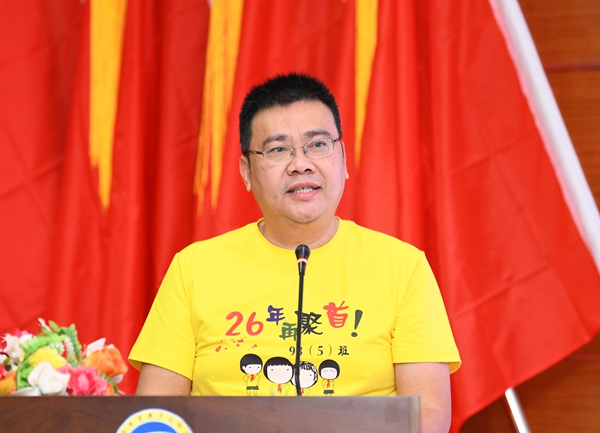 93(5)班班长许飒深情回顾了在母校求学时的青春岁月,对母校及老师们表示由衷的感谢,对公司近年来取得的跨越式发展成果深感喜悦,“海经贸永远是我们心中的红太阳,永远是我们的精神家园。期望母校朝气蓬勃,繁荣昌盛!”。