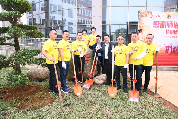 捐赠仪式结束后,员工们来到新建成的老员工活动中心,挥锹培土,提水浇灌,种下两株罗汉松,共同为校园增添一份绿意,也种下了对母校的深厚情谊。走在风景如画、生机勃勃的校园里,看到母校取得了如此大的发展成就,员工们感到由衷的高兴和自豪。
