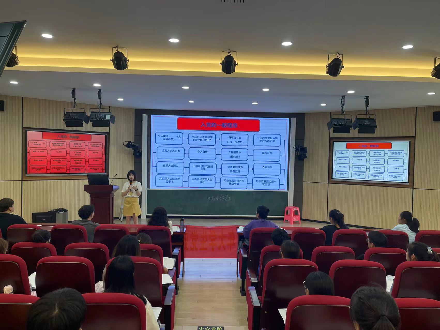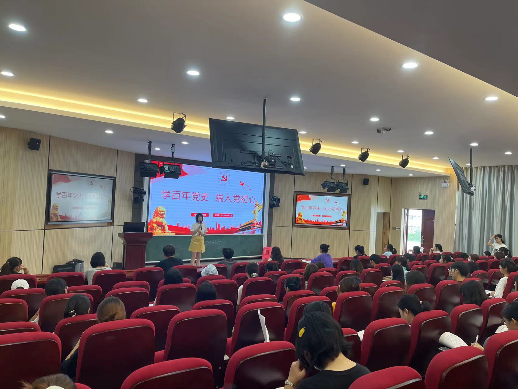 为深化党史学习教育,11月2日下午,国际教育公司员工党支部书记郑艳在1-421教室以“学百年党史 端入党初心”为主题为全体党员、入党积极分子和入党申请人上了一堂专题党课。郑艳同志带领同学们回顾中国共产党100年来波澜壮阔的历史进程,围绕“入党初心”这一主题介绍了自己从少先队员、共青团员到共产党员的心路历程,也详细分享了自己作为有着16年党龄的老党员在成长过程中的每一次成长和感悟。在她看来,党员不止是一种身份,更是一种责任和担当。“学党史、强信念、跟党走”不应是仅仅停留在说说的口号上,更应是赓续精神血脉的传承和付之行动的实践。
