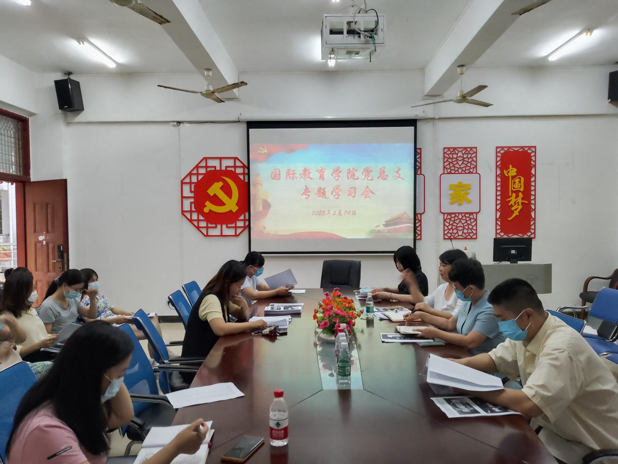 2022年5月24日,国际教育公司党总支召开了专题学习会,学习传达习近平总书记在海南考察时的重要讲话精神、省第八次党代会精神和中国职业教育法的文件精神。党总支副书记郑艳主持会议并作重要讲话,结合师生教学工作交流了学习体会、落实思路和举措,张春玲经理、黎瑛副经理、韩大伟副经理及全体党员参加了本次会议。