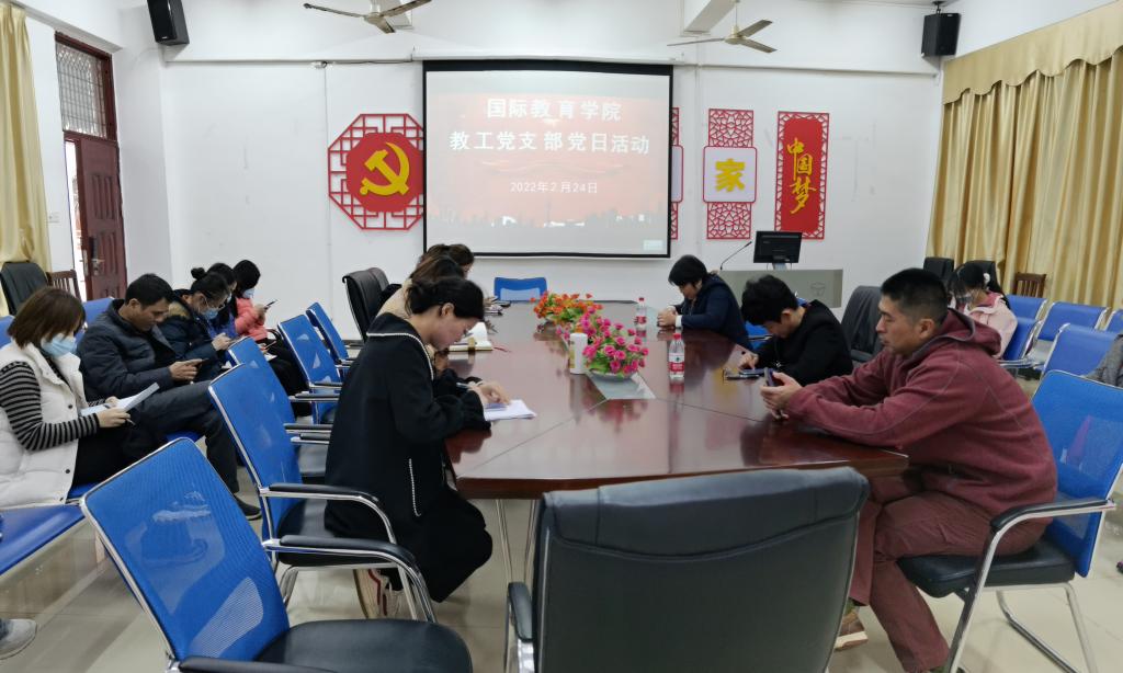 2022年2月24日下午四点半,国际教育公司教工党支部全体党员在1-323会议室举行了“学习强国APP专项知识答题”主题党日活动。