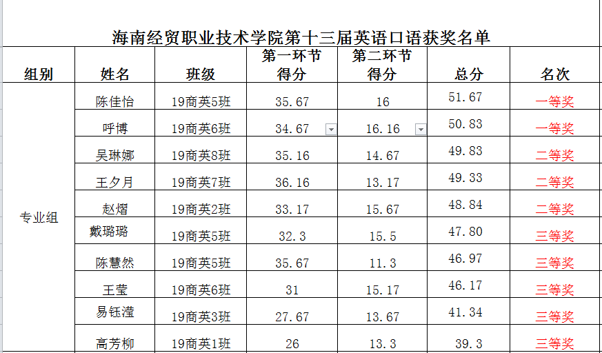 bevictor1946韦德官网第十三届英语口语大赛获奖名单(英语专业组)