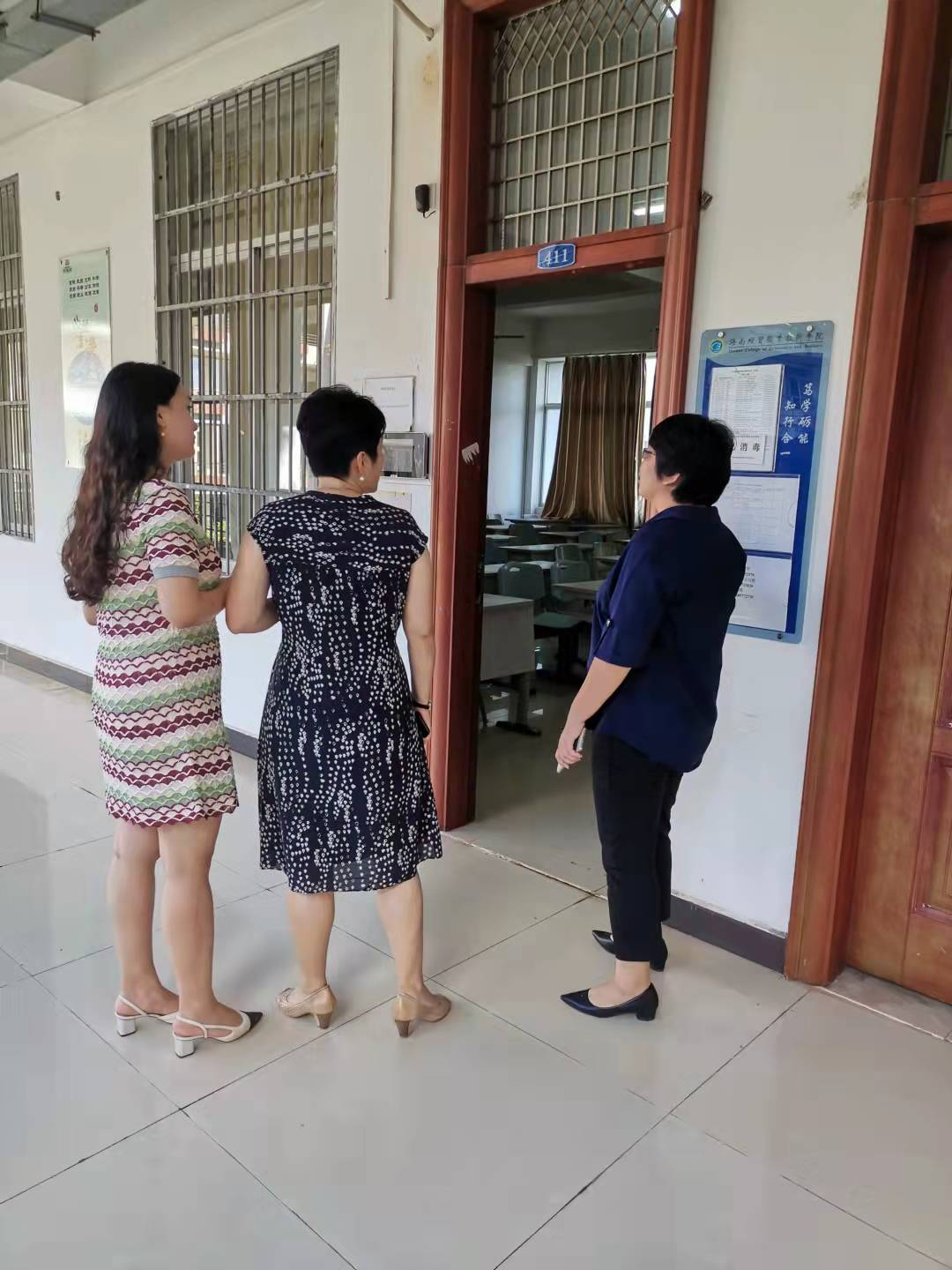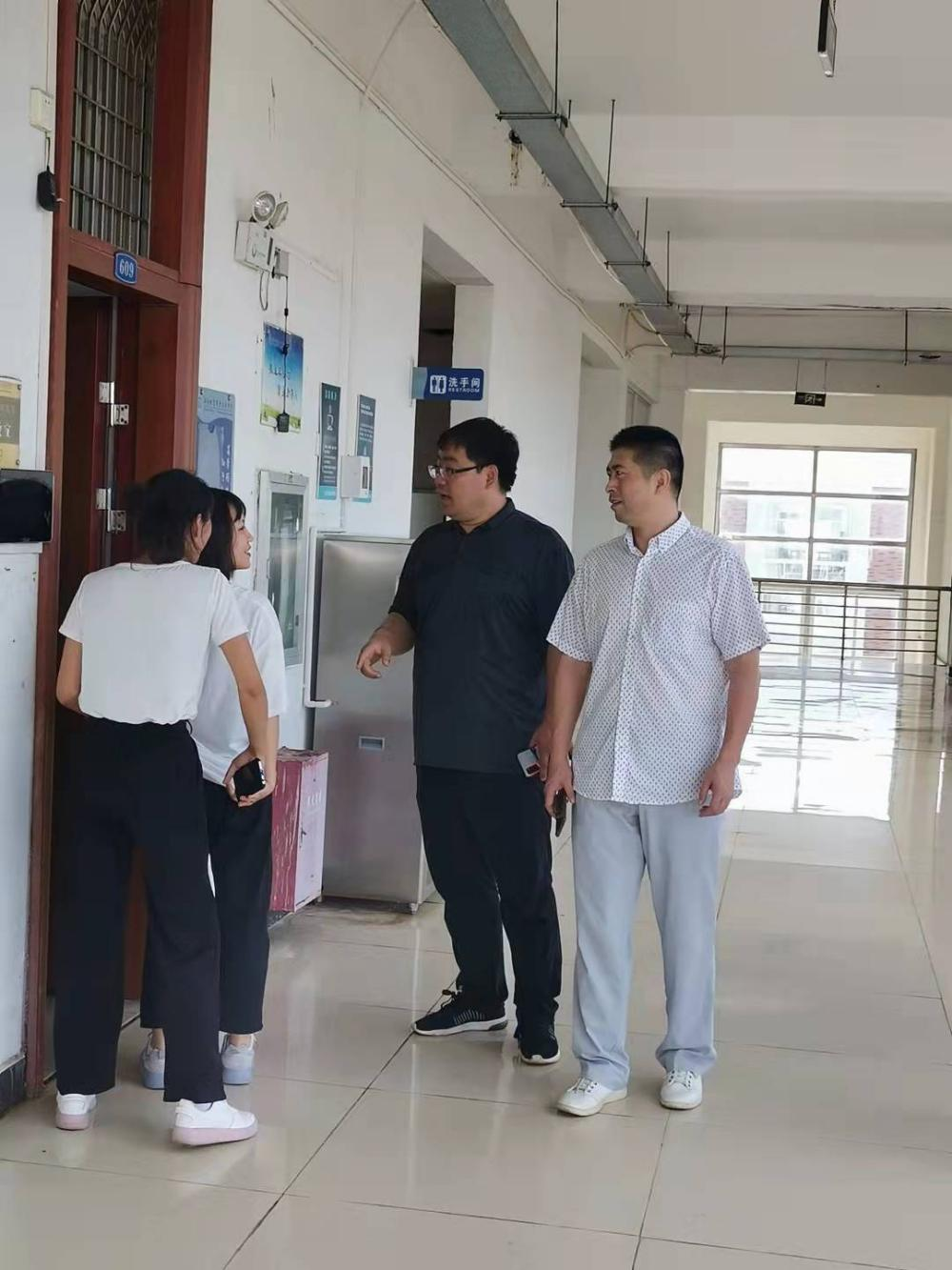 领导们首先从第一教学楼4楼开始巡查开学第一天上课情况。在检查过程中,根据课表仔细检查上课时间、地点、教师及到课员工数,巡视了师生开学初的精神风貌、教学设备及教学环境等情况。