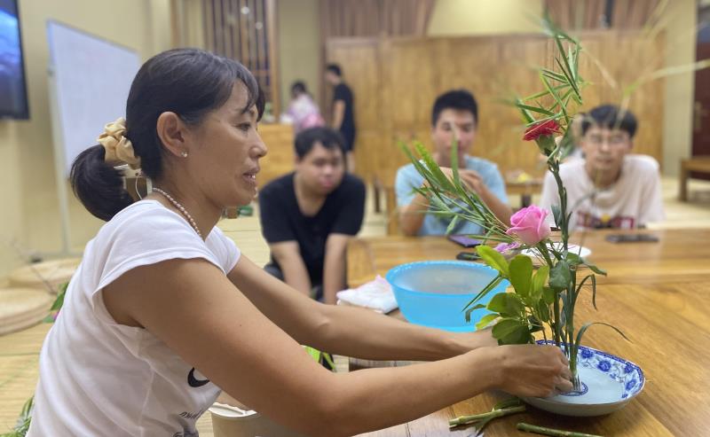 林由惠老师给同学展示了一堂生动的花道课。在林由惠老师的讲解下,员工们亲自动手实践,他们按照老师的示范步骤,最后把一件件充满创意的作品展现出来。